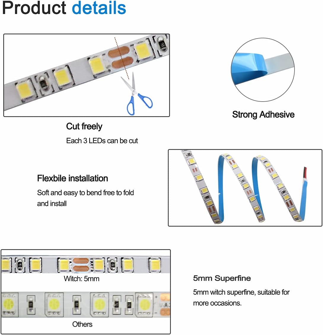 - Einfach zu installieren: Led lichtleiste kann zwischen jeweils 3 leds geschnitten werden, Es kommt mit doppelseitigem Klebeband, einfache Anwendung, Reinigen Sie zuerst die Oberfläche und passen Sie sie dann auf jede trockene und ebene Oberfläche.