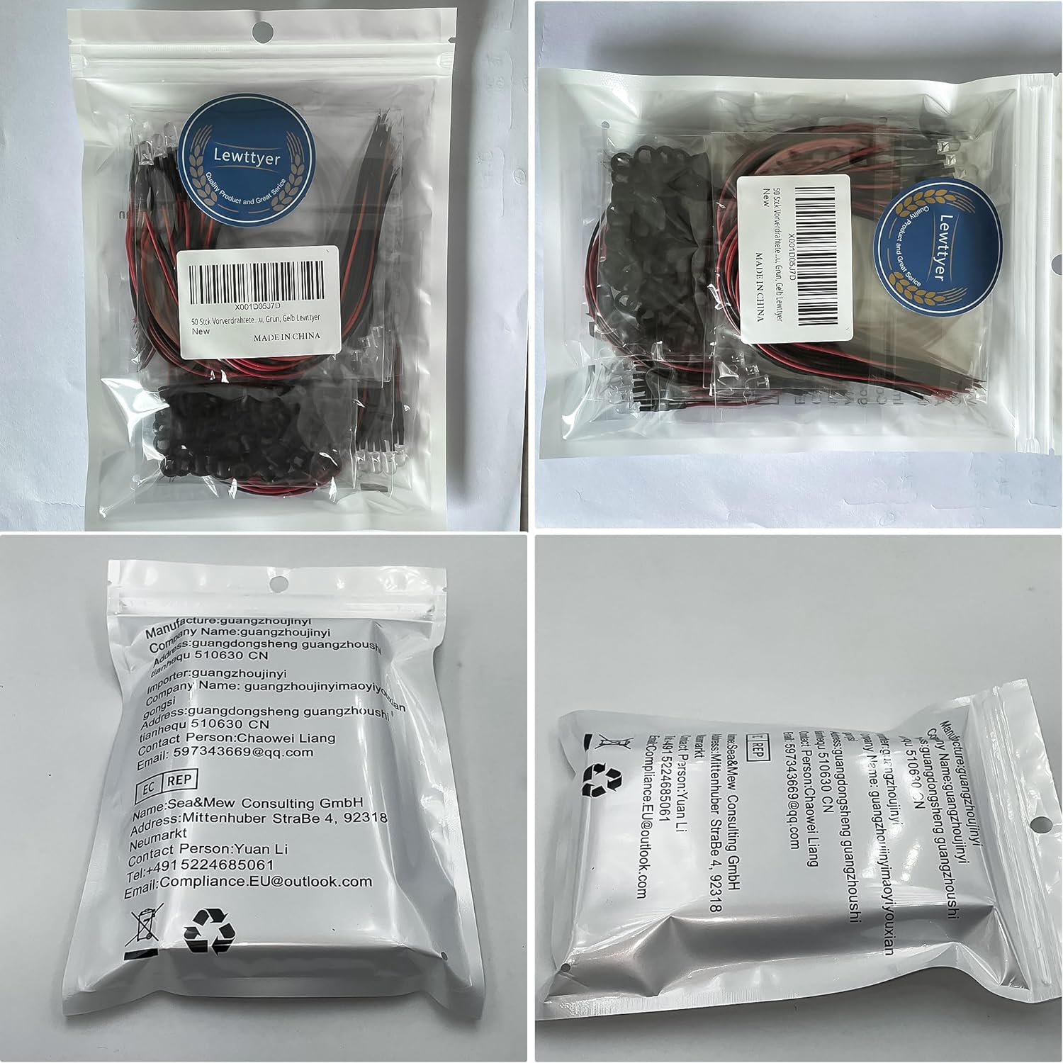 ✅[Packungsinhalt] Vorverkabelte LED-Dioden: weiß*10;blau*10;grün*10;Farbe*10;rot*10;5mm LED-Montagering*50
