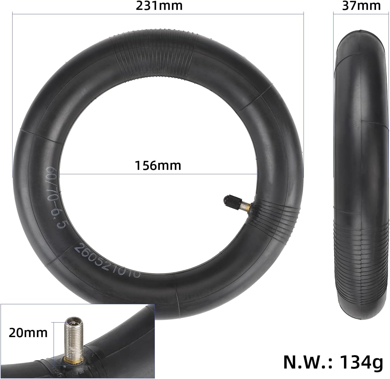 60/70-6,5 dicker Schlauch für Elektroroller, 10" pneumatischer Schlauch mit gerader Düse, pannensicher. Speziell entwickelt, um die originalen 10-Zoll-Vorder- oder Hinterräder für Ninebot MAX G30/G30 D/G30 D2/G30E/G30LP Elektroroller zu ersetzen.