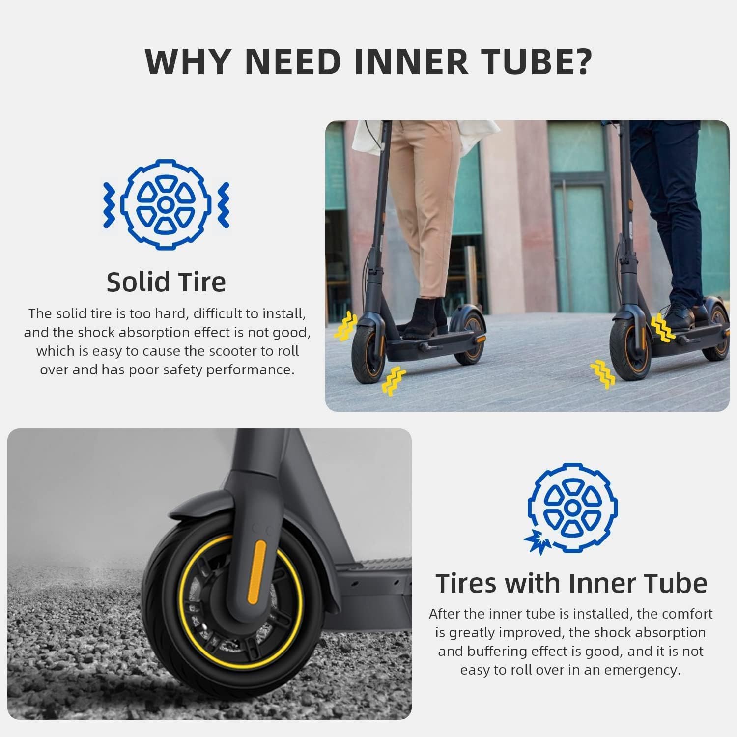 Verwenden Sie unsere dickeren Schläuche mit schlauchlosen Reifen, um bessere Ergebnisse zu erzielen. Dickerem Schlauch haben hervorragenden Komfort und Stabilität, was ein besseres Fahrerlebnis bietet als die anderen Reifen, stabil, stoßdämpfend und nicht holprig, insbesondere auf unbefestigten Straßen, Waldwegen, Steinpflaster und unebene, unregelmäßige Straßen.
