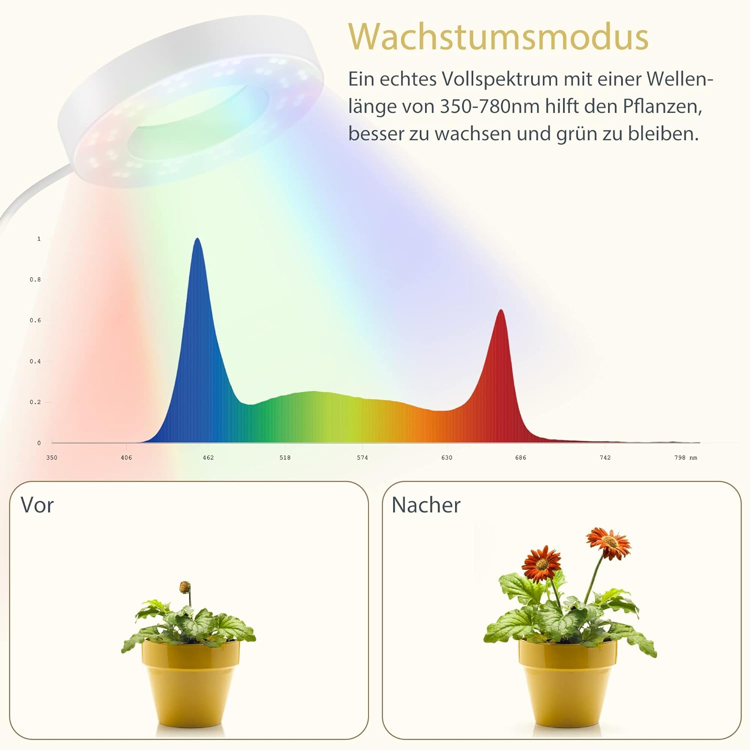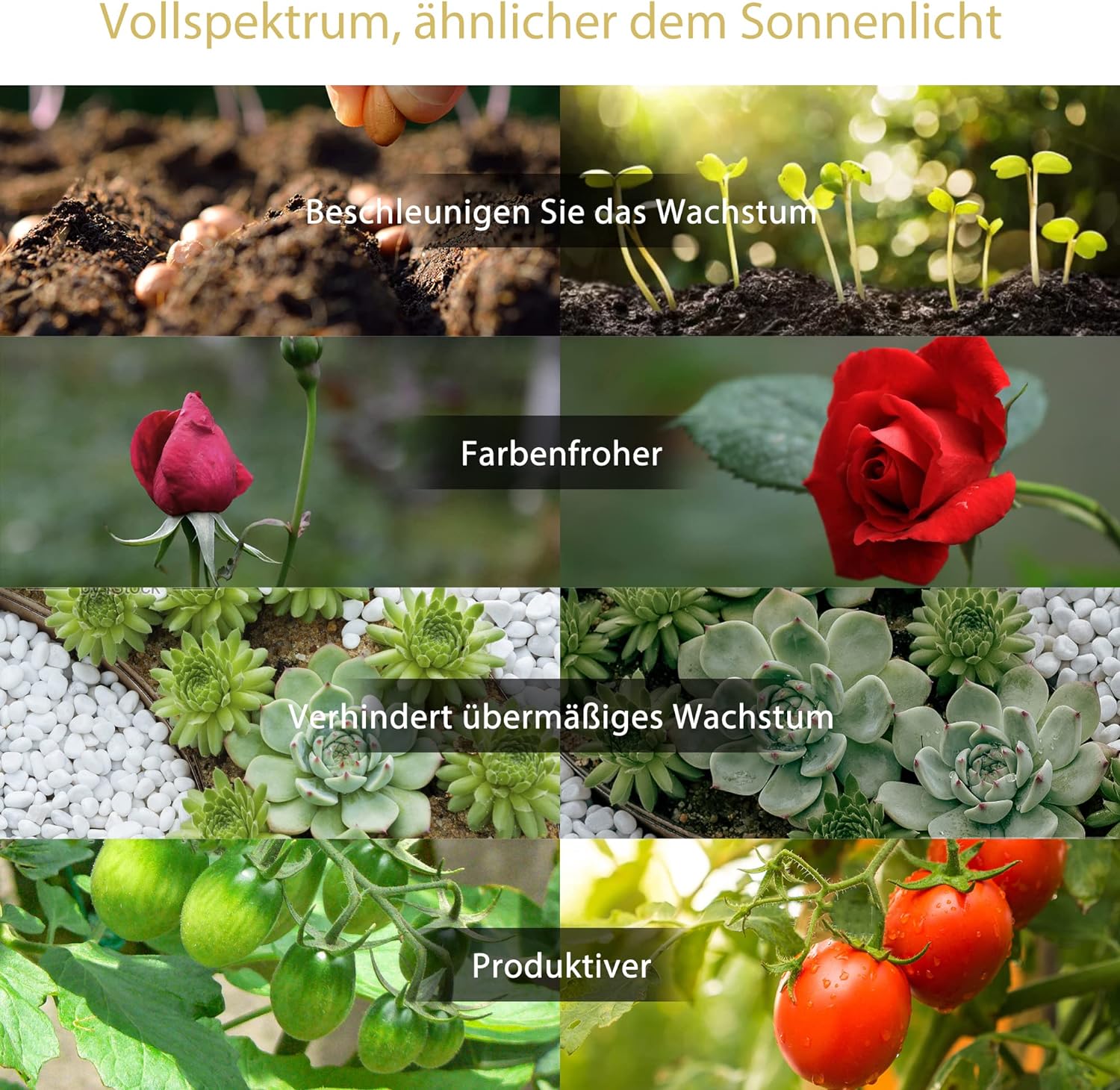 Wirksames Volles Spektrum: das Wachstumslicht hat ein echtes Vollspektrum mit 350-780nm Wellenlänge, das für jeden Zyklus des Pflanzenwachstums geeignet ist. Entwickelt für die Wachstumsstadien Keimung, Aussaat, Vegetation, Knospung, Blüte und Reifung.