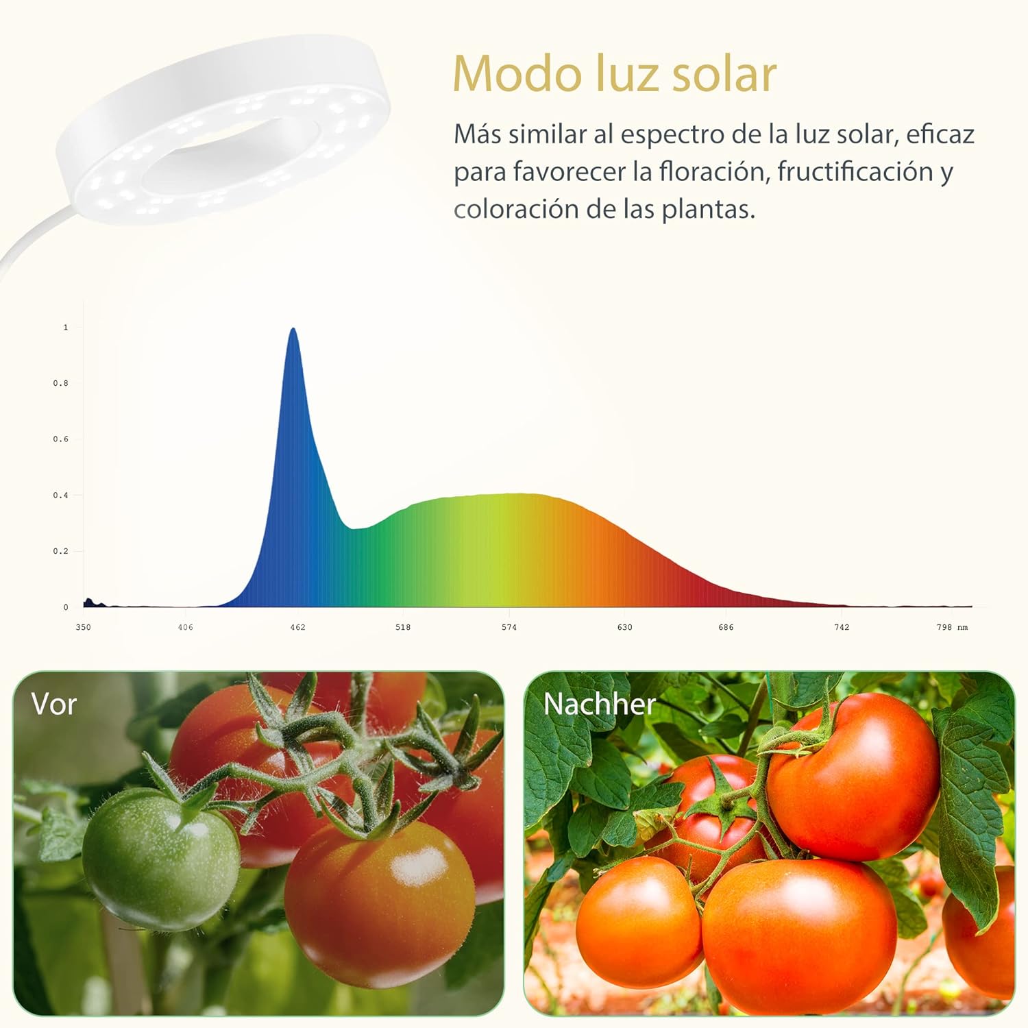 Färben Sie Ihre Pflanze: Sonnenlicht-Modus entwickelt, um Pflanzen schön zu präsentieren und gleichzeitig das Pflanzenwachstum und die Blüte zu fördern. Sogar in Innenräumen können Ihre Pflanzen das Sonnenlicht genießen, und Sie können den Anblick der lebendigen Farben Ihrer Pflanzen genießen.