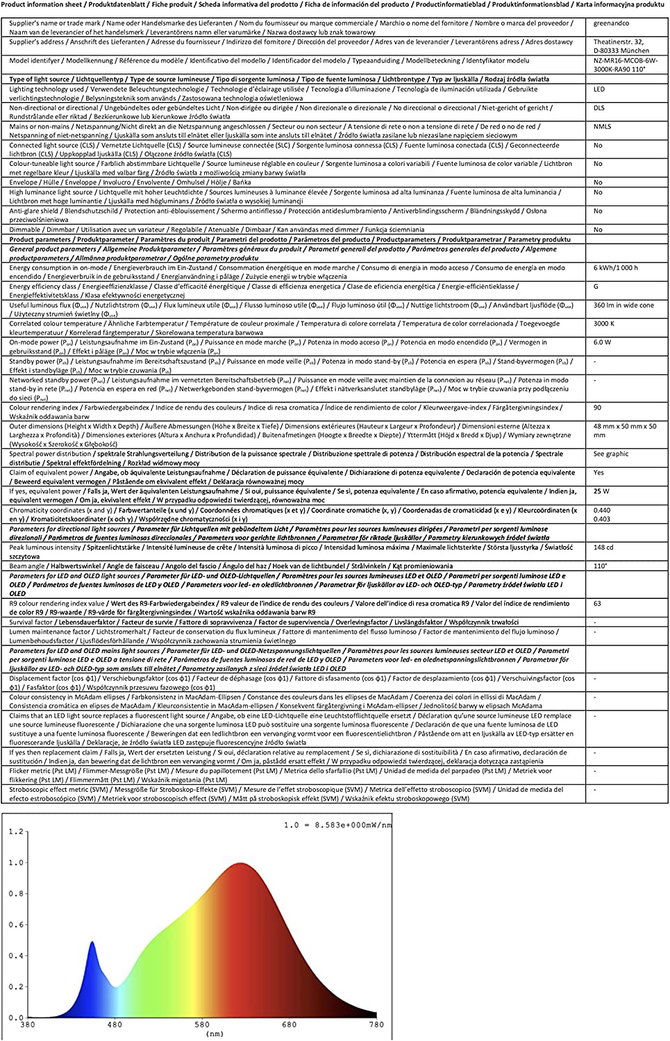NACHHALTIGKEIT: Mit dieser Lampe mit Energieeffizienzklasse G sparen Sie 85% Energie gegenüber einem vergleichbaren Halogenspot ein. Neben der hohen Energieersparnis sind greenandco LED-Lampen frei von Quecksilber und setzen keine UV Strahlung frei. Außerdem sind sie sehr langlebig: Die mittlere Lebensdauer beträgt 20.000 Stunden.