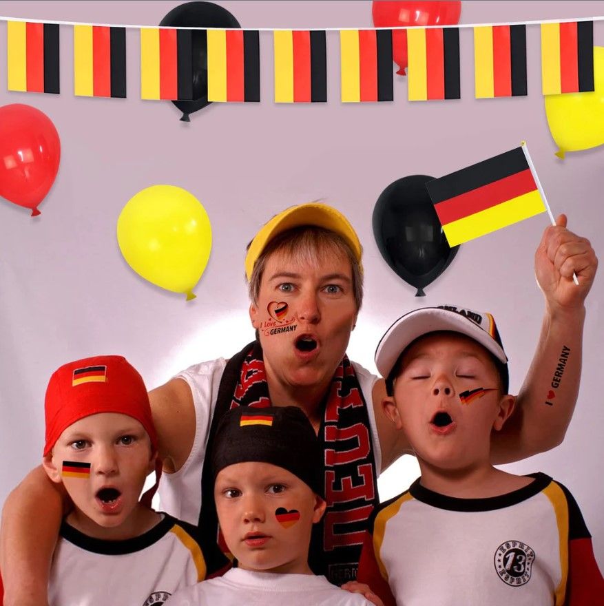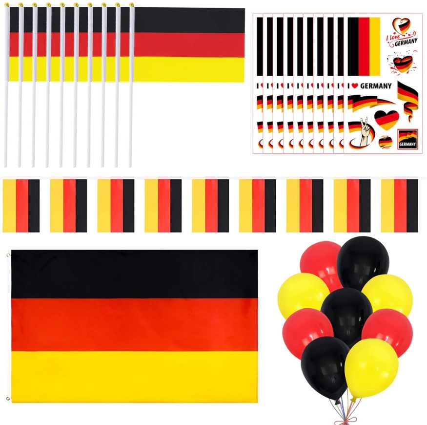 Deutschlandfahnen, Handschwenkfahne, Tattoo-Sticker, Luftballons für die Party-Deko