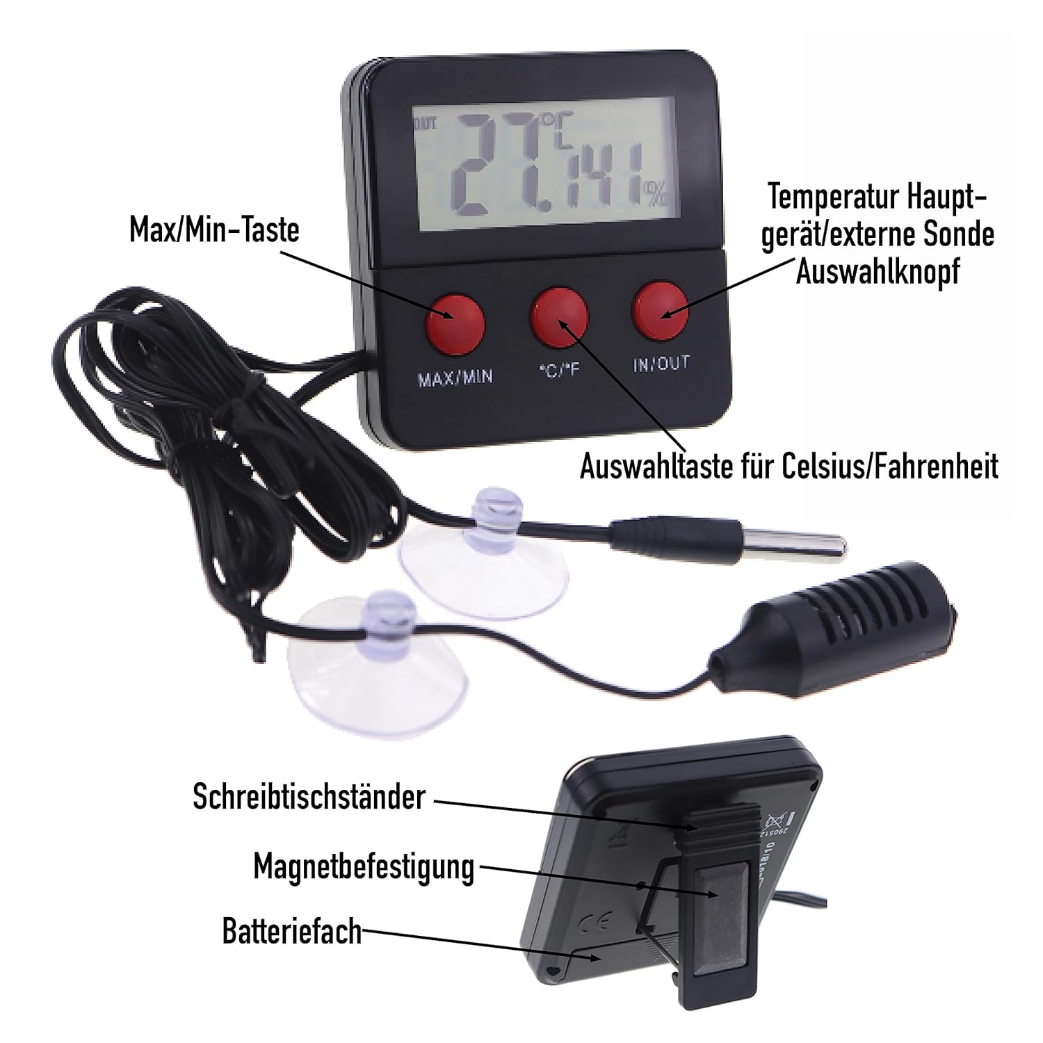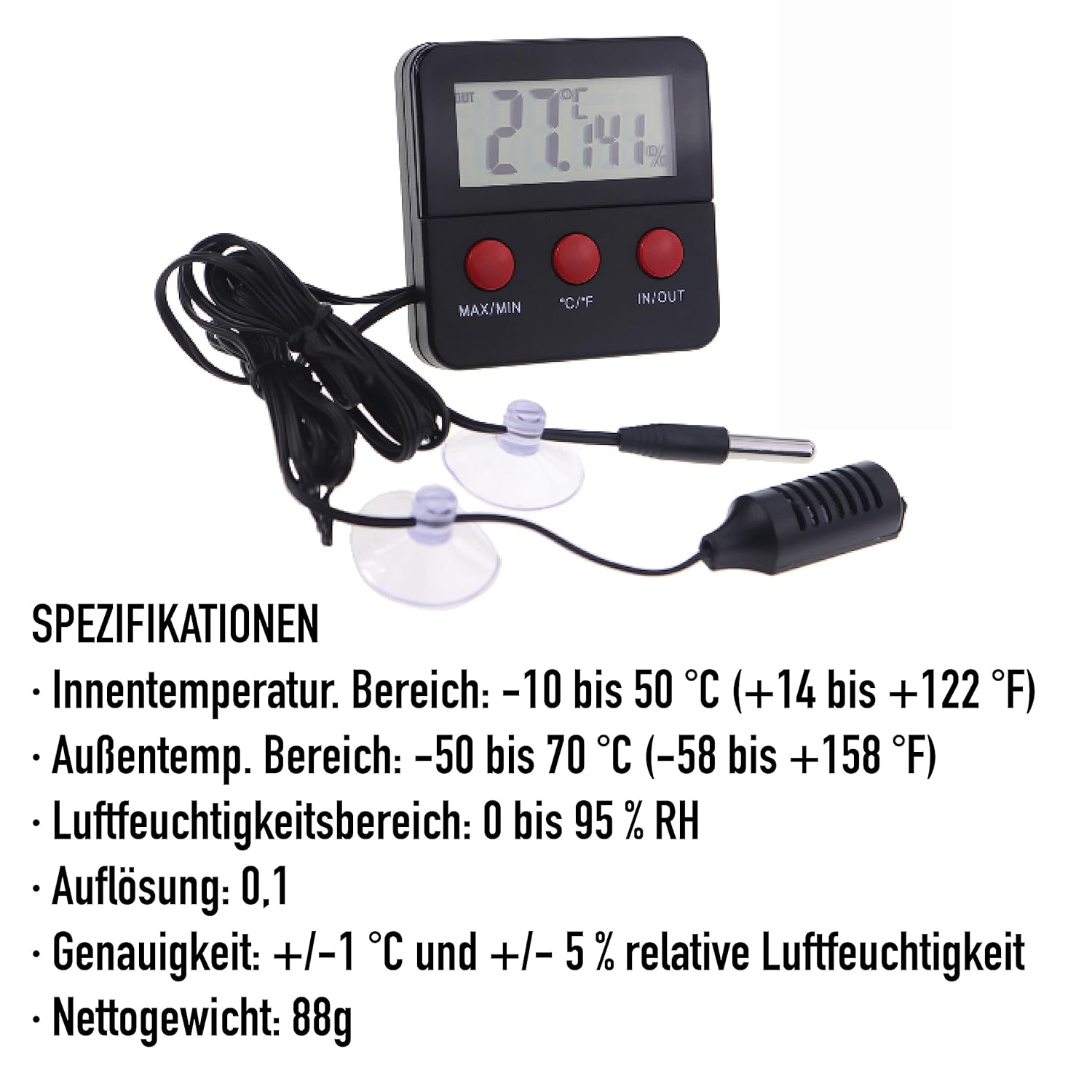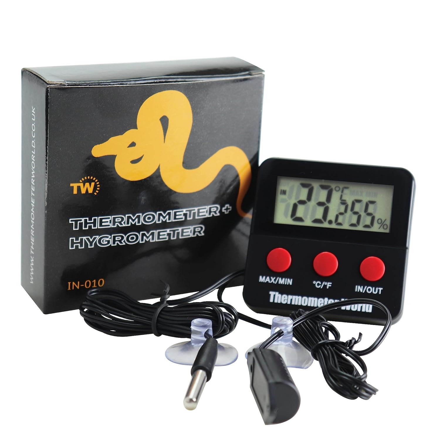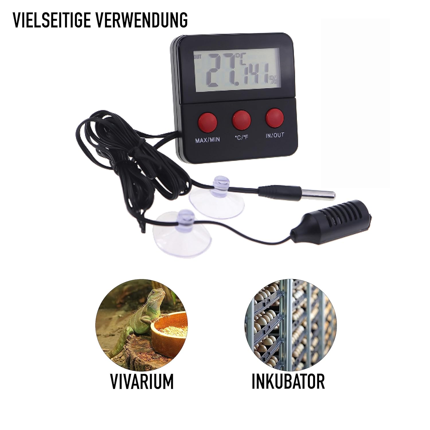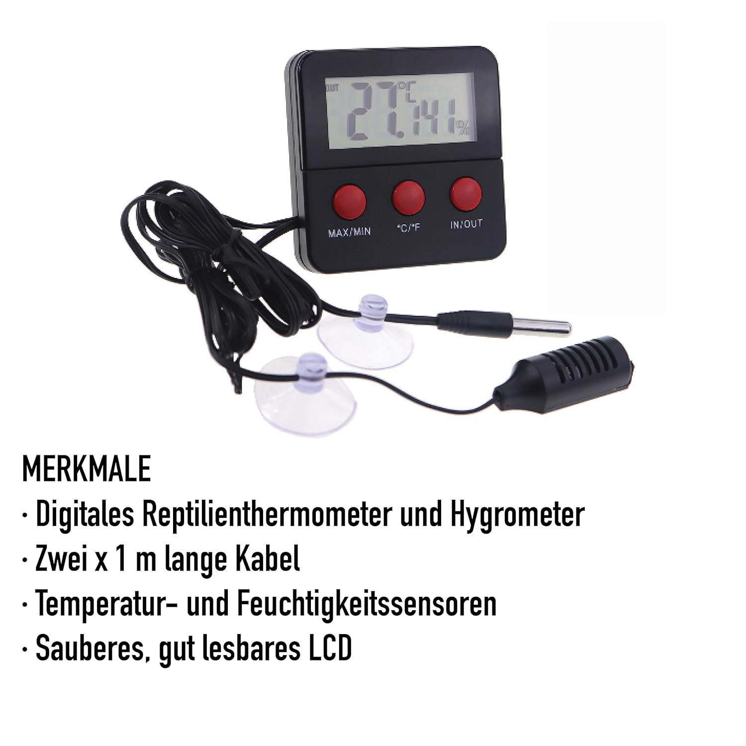 Produktinformationen "Digitales Reptilien-Thermometer Hygrometer mit 2 abgesetzten Sonden zur Messung von Luftfeuchtigkeit und Temperatur"