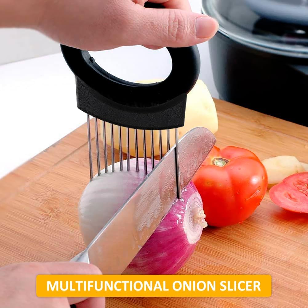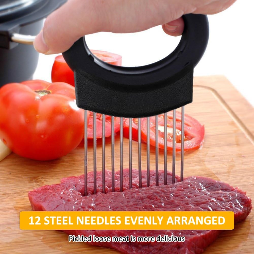 ăEinzigartiges Designă: Die Zwiebelnadel aus Edelstahl hat 12 Edelstahlgabeln unter dem Griff. Die Lebensmittel werden schnell und prĂ€zise geschnitten. Nadelreihen sind gesichert und gleichmĂ€Ăig verteilte Stiche verhindern ein Verrutschen und schneiden gleichmĂ€Ăig fĂŒr zusĂ€tzliche Sicherheit.