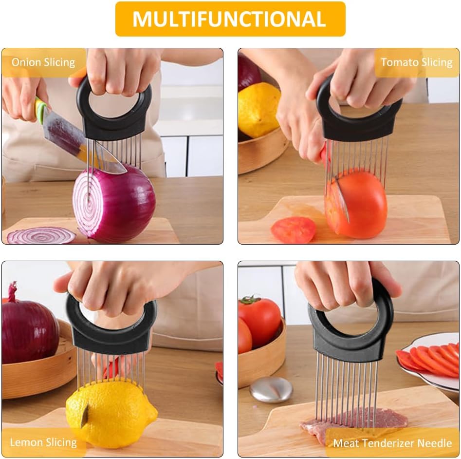 đăBreites Einsatzspektrumă: Die multifunktionale Zwiebelnadel kann nicht nur zum Schneiden von Zwiebeln, Tomaten, Kartoffeln, Zitronen, Gurken, Karotten und sogar gekochten Eiern verwendet werden, sondern kann auch als Fleischklopfer verwendet werden. um seinen Geschmack zu verstĂ€rken. Kochzeit sparen.