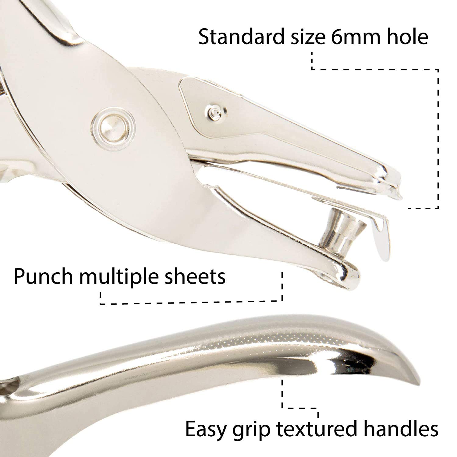Produktinformationen "Einlochzange Edelstahl Lochdurchmesser 6MM 8 Blatt Kapazität Silber"