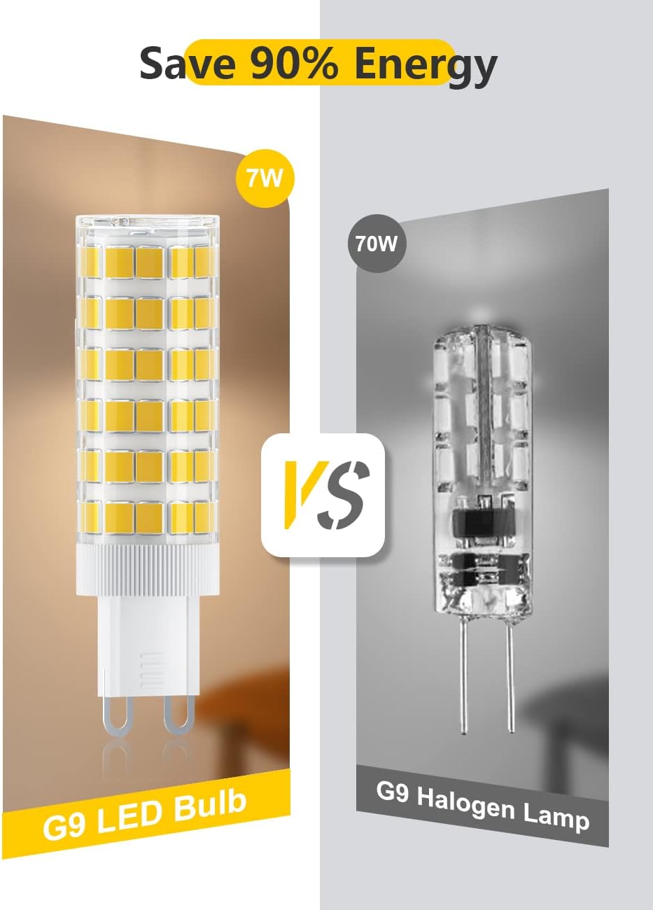 💡【Energiesparend】G9 7W LED Lampen sind ein ideal Ersatz für 70 W Halogenlampen, im Vergleich zu herkömmlichenHalogenlampen verbrauchen G9 LED Leuchtmittel nur 10% Energie, wodurch 90% der Energiekosten eingespart werden können.