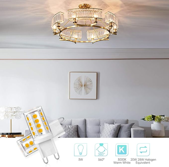 ▣ 90% ENERGIESPAREND - 3W G9 LED lampe emittiert bei 280 lm, was 20 W / 28W G9 halogenlampen entspricht; verbesserte IC + LED-Chips, verhindern visuelles Flimmern; Sofort einschalten, innerhalb von 0,5 s einschalten, keine Aufwärmzeit