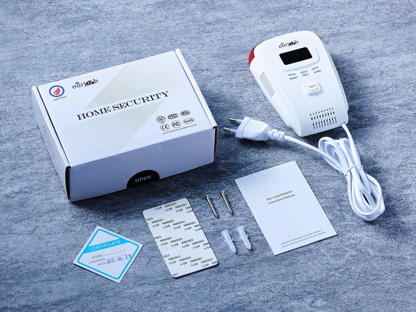 【Einfach zu installieren】-- Plug-In Gasalarm Design für den Heimgebrauch, A / C-powered, viel bequem. Drücken Sie im Aufwärmmodus kurz die "Test" -Taste, um in die englische Anzeige zu wechseln.