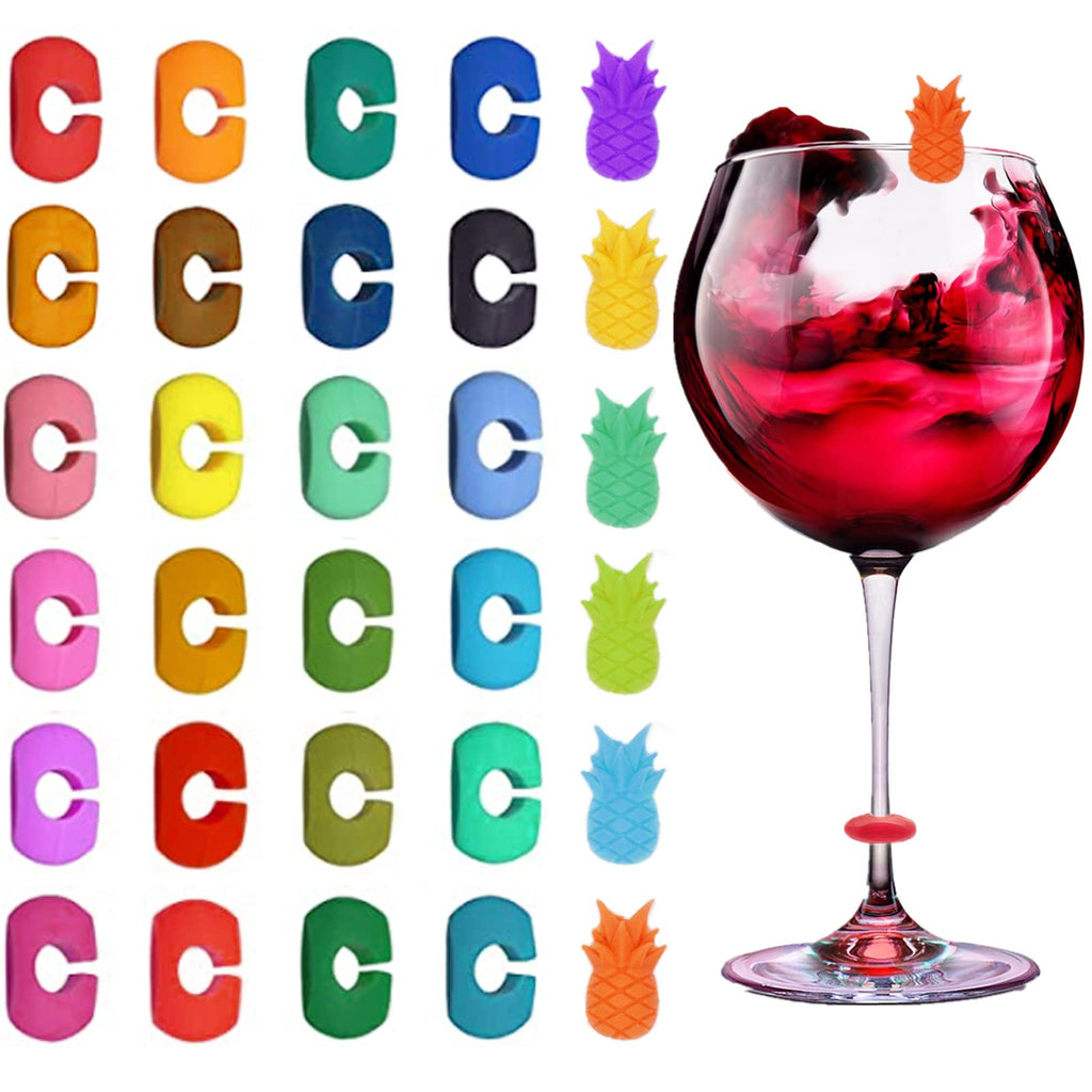 DARBEY 30 Stück Glasmarker, Silikon-Glasmarker Party, wiederverwendbare Glasmarker, bunte Silikon-Glasmarker für Party, Champagner, Cocktail, Martini-Glas, Weinglasmarker