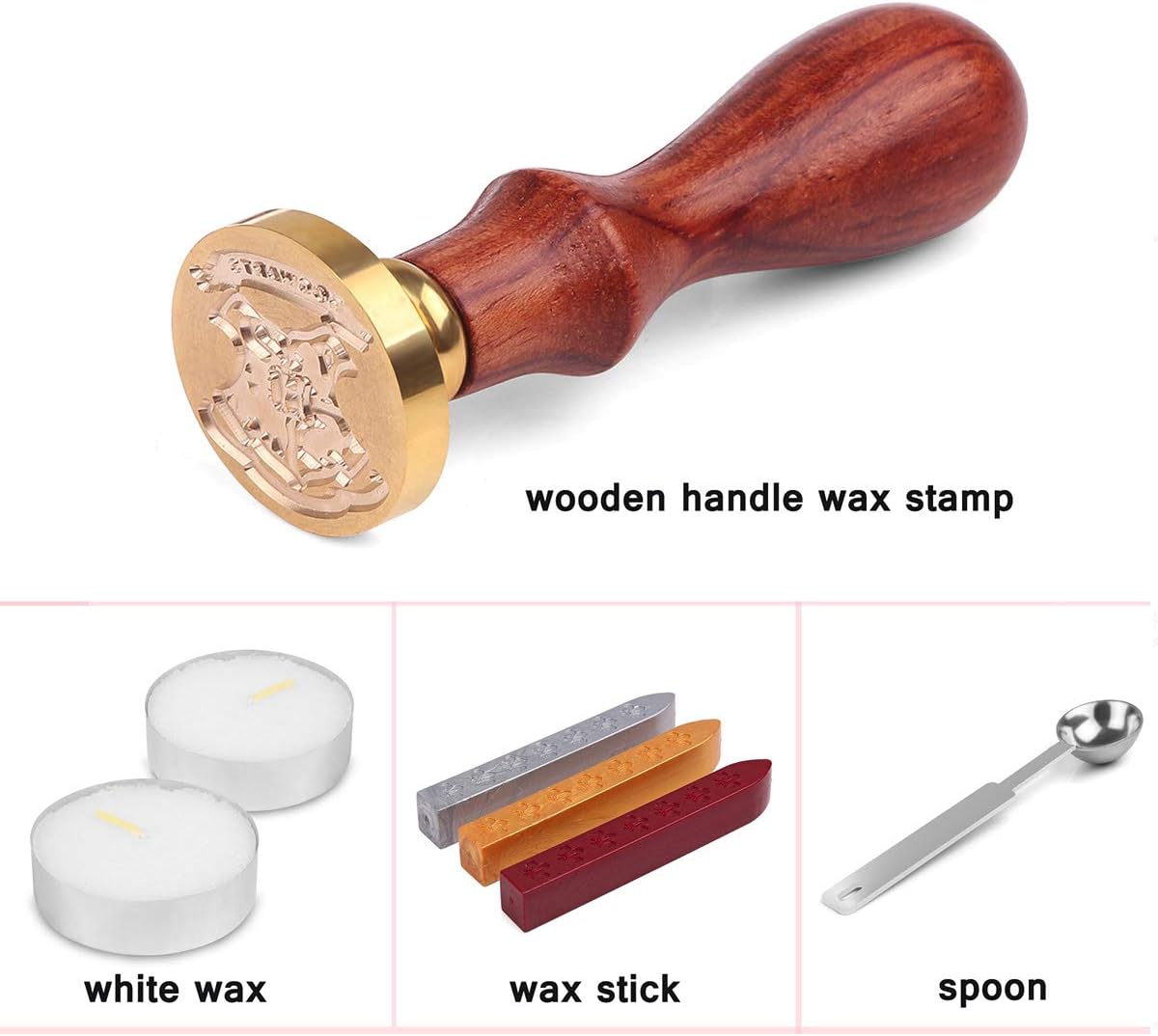 Hogwarts Siegelwachs-Kit: Klassisches Hogwarts-Wachsversiegelungs-Set: 3x Siegelwachs, 1x großer Wachsschmelzlöffel, 2x weiße Kerzen, 1x Wachsstempel mit Hogwarts Muster