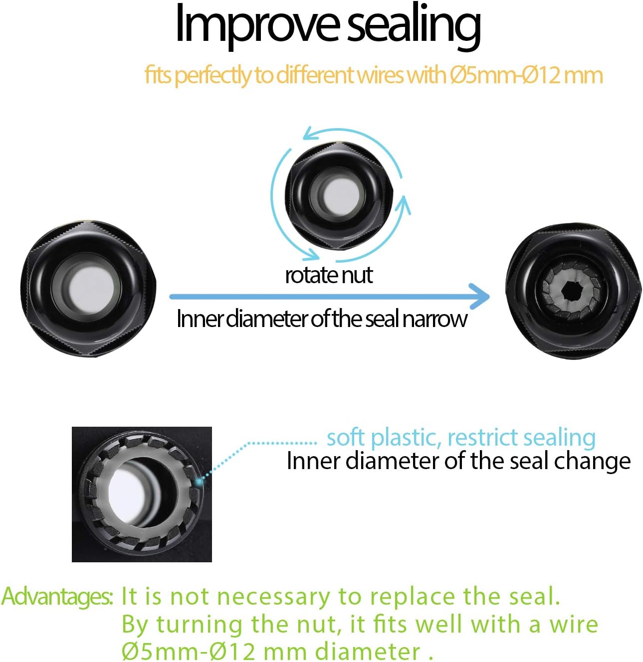 ✅𝐖𝐀𝐒𝐒𝐄𝐑𝐃𝐈𝐂𝐇𝐓&𝐔𝐌𝐖𝐄𝐋𝐓𝐅𝐑𝐄𝐔𝐍𝐃𝐋𝐈𝐂𝐇: Für Kabel von Ø4mm-Ø12mm ist verfügbar. Durch Drehen der Kappen stehen Dichtring und Kabel in engem Kontakt und dichten vollständig ab. Während der Zweck der Wasserdichtigkeit erreicht wird, ist die Reduzierung der Anzahl von Zubehör umweltfreundlicher.