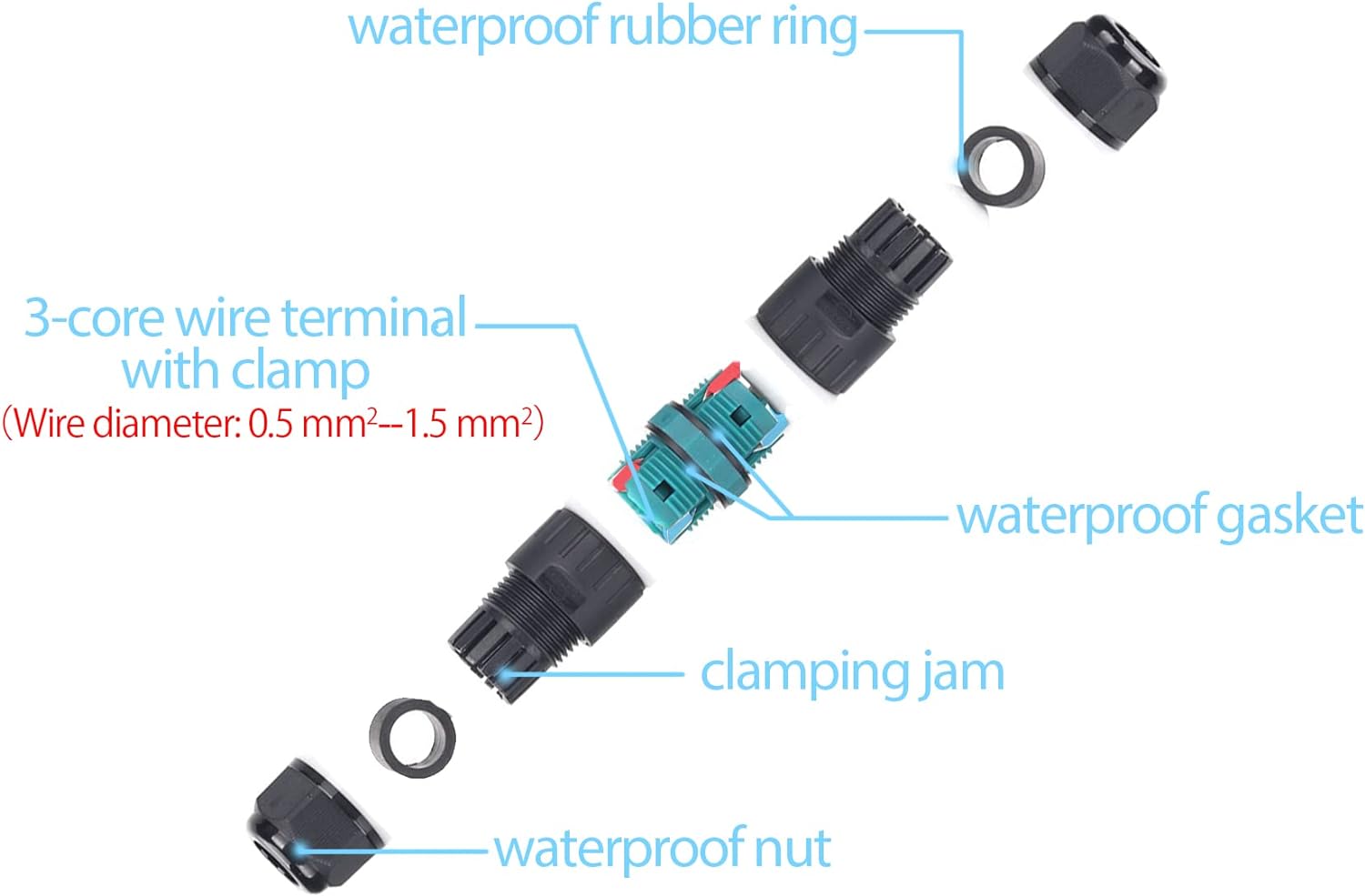 Produktinformationen "Kabelverbinder Wasserdicht IP68 2er-Pack Ø4mm-Ø12mm TÜV-Zertifizierung Verbindungsmuffe mit Klemme Außen 3-polig für Garten"