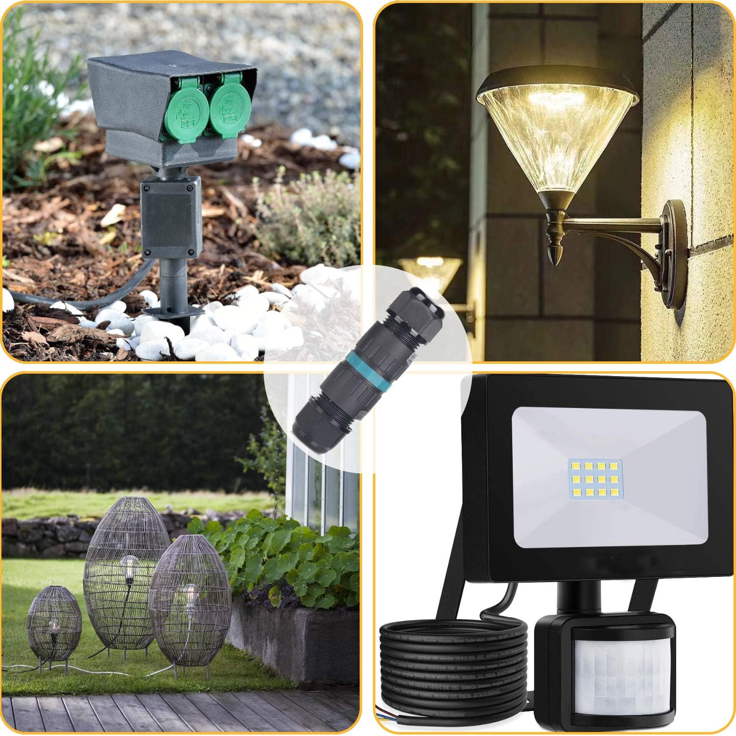 Kabelverbinder Wasserdicht IP68 2er-Pack Ø4mm-Ø12mm TÜV-Zertifizierung Verbindungsmuffe mit Klemme Außen 3-polig für Garten