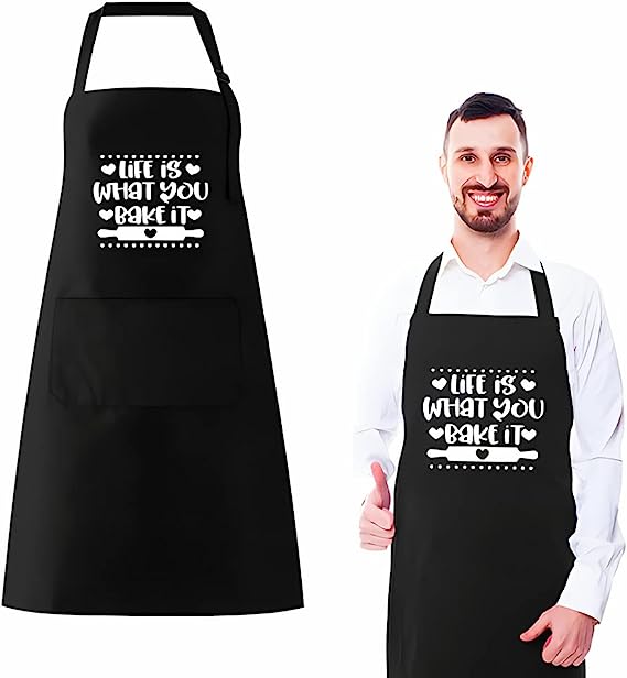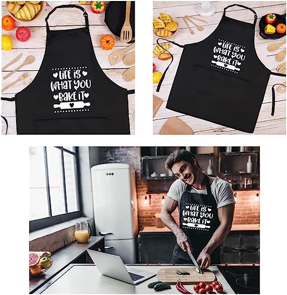 👨🍳 Perfekte Größe: Der Nackengurt der Herrenschürze (70 x 80 cm/27,55 x 31,49 Zoll) ist verstellbar, um die ideale Größe zu erreichen, und der verlängerte Gurt lässt sich lösen und ist für die meisten Menschen geeignet.