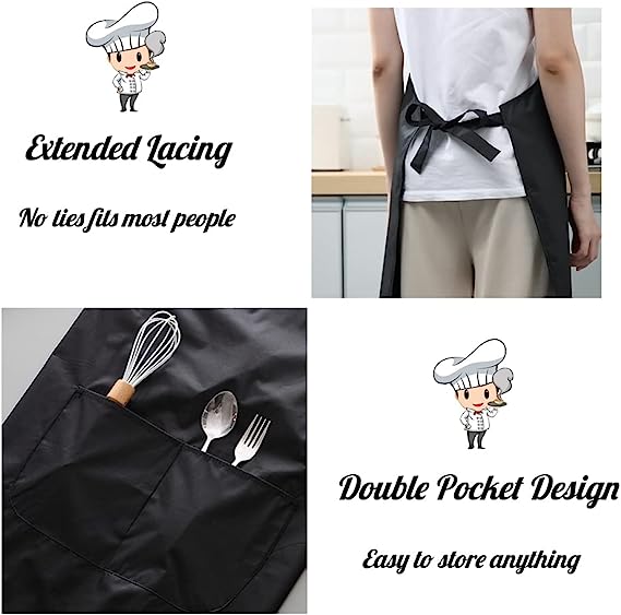 Küchenschürze, schwarze Schürze mit 2 Taschen
