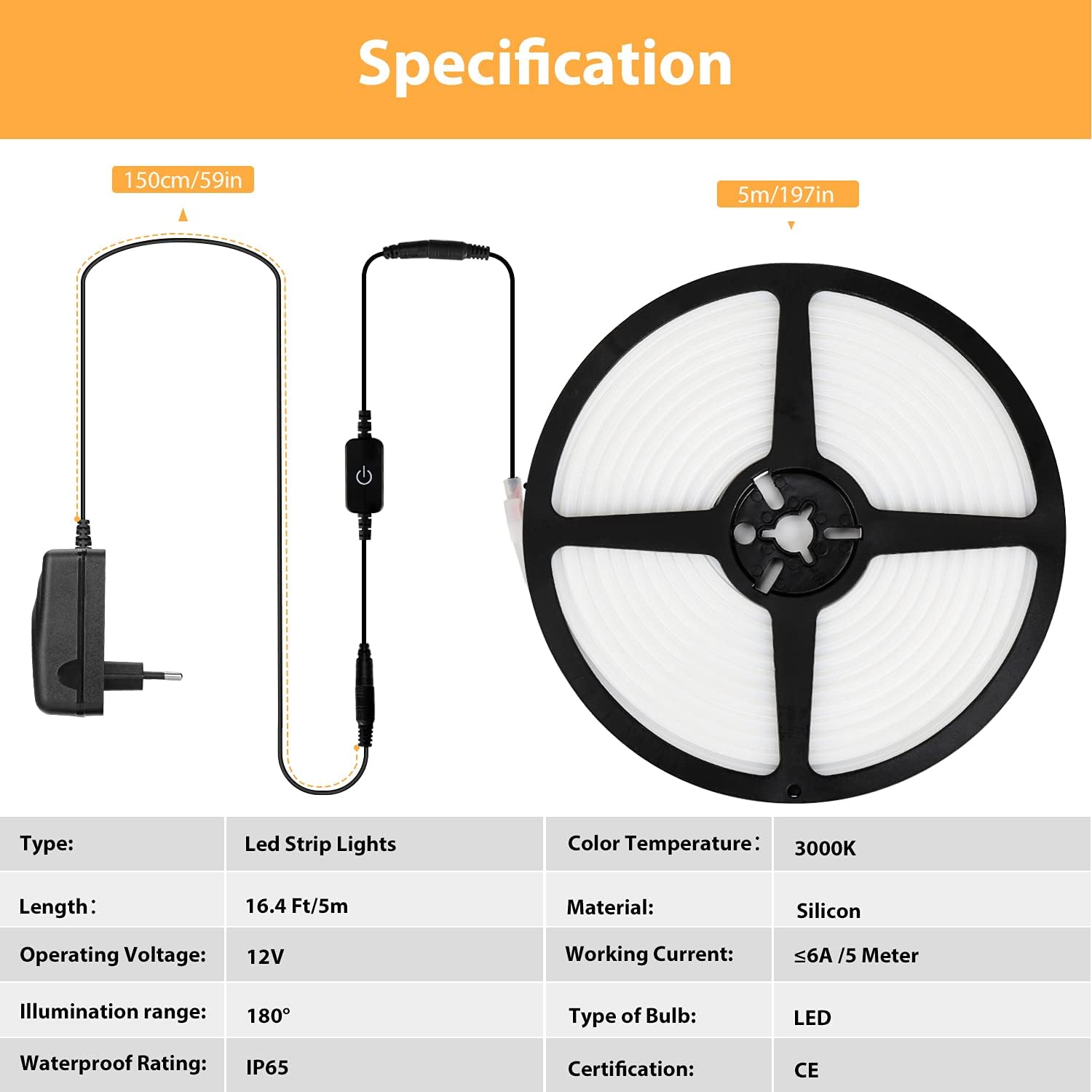 👉【LED Strip Lights wasserdicht IP65】 Gemacht von der IP65 Technologie, die es wasserdicht macht, verfügbar, um im Schwimmbad/im starken Regen zu verwenden. Durable&Weather-resistant&Heatproof Silicone Construction. Safer Silikon Material, wird nicht selbst entzündet werden, auch mit Feuer verbrannt; LED wird nicht aussterben