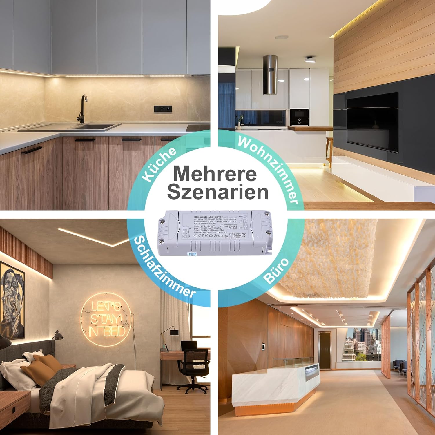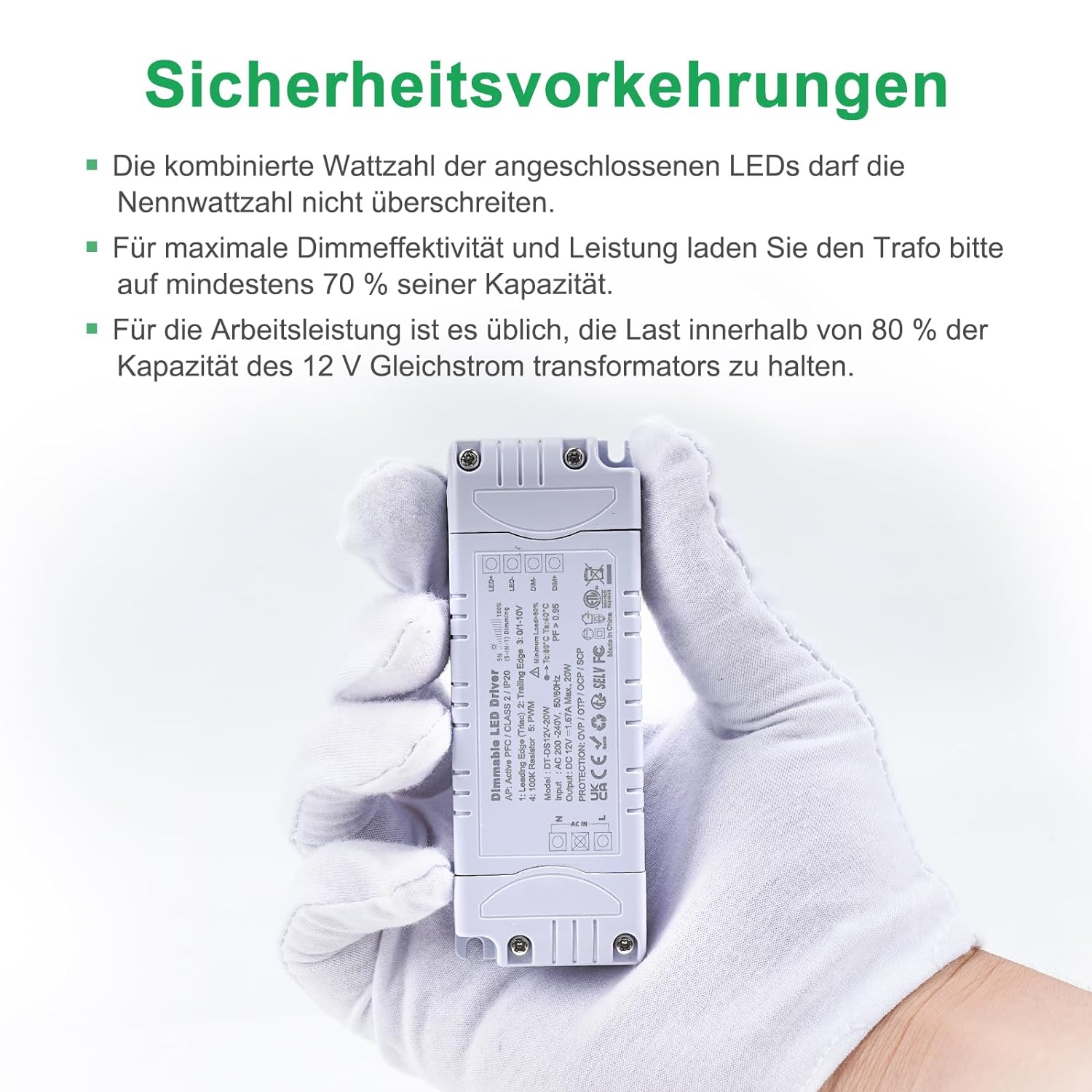 Keine geräuschlos, sanfte und flimmerfreie Lichtabgabe zum Schutz Ihrer Augen. Ein idealer elektronischer Transformator für die meisten LED-Anwendungen.