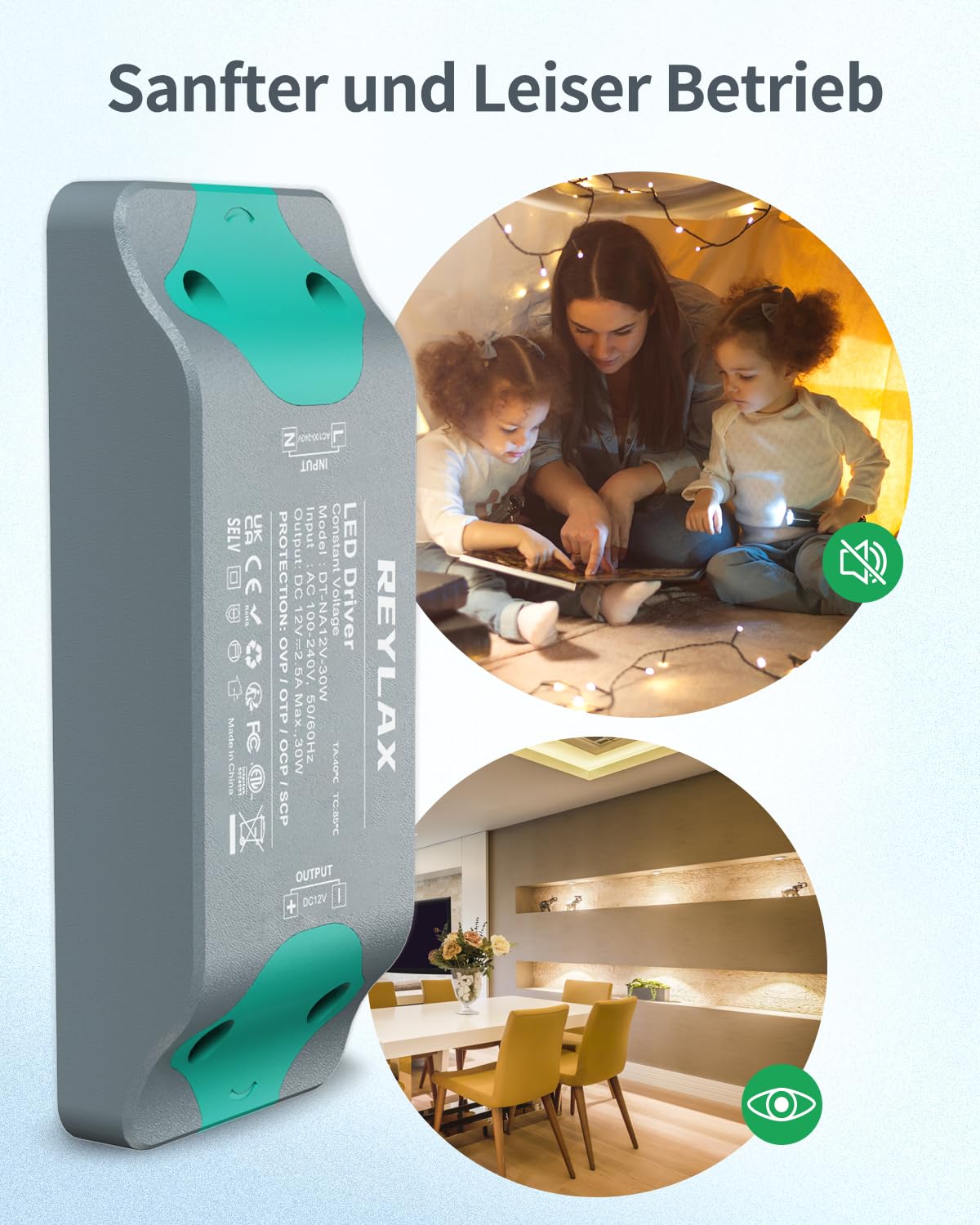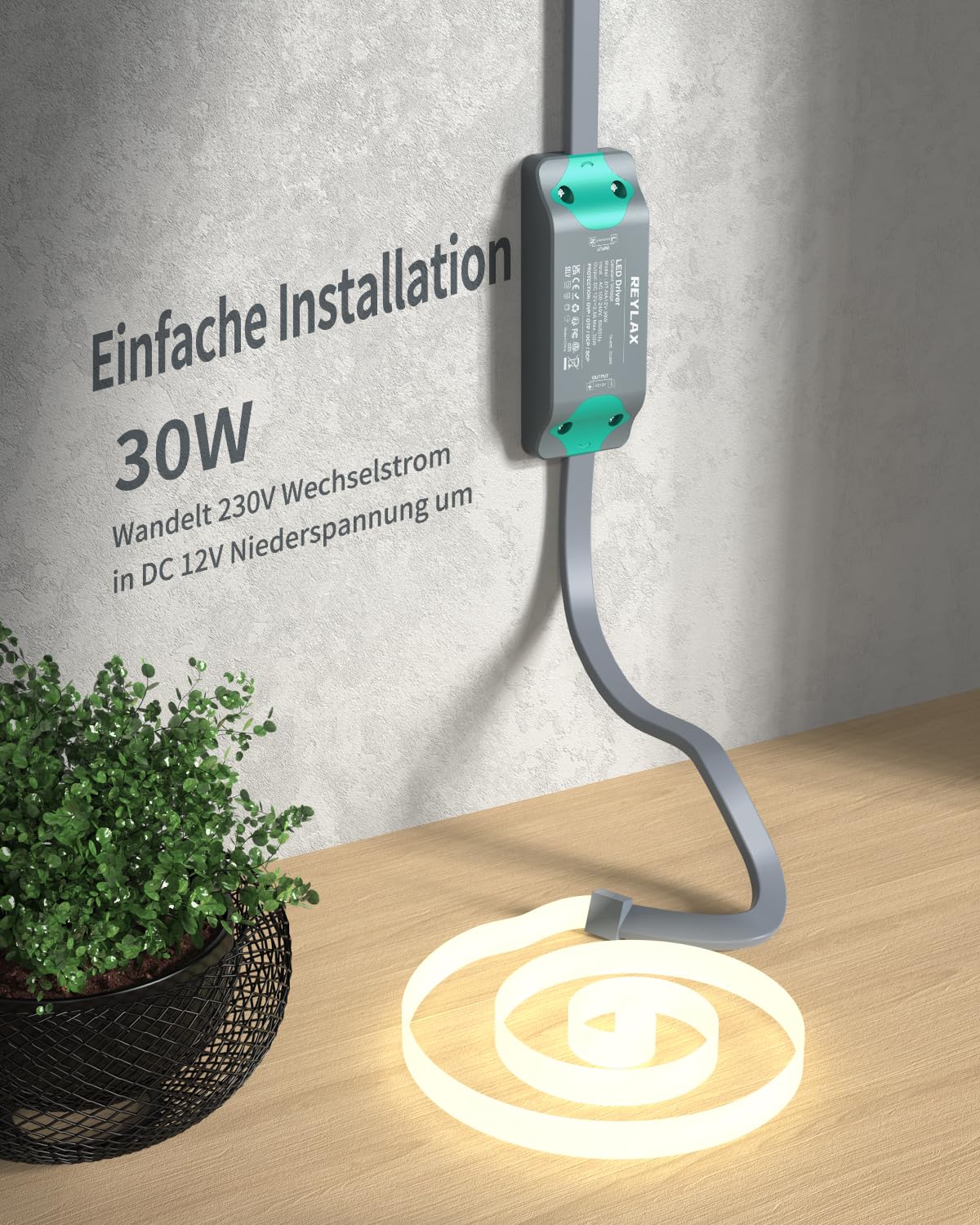 【Kompaktes Design】Der LED Trafo fügt sich nahtlos in jede Umgebung ein, ohne dabei das Innendesign zu beeinträchtigen. Verstecken Sie ihn diskret hinter Küchenschränken, Wohnzimmerdecken, Möbelwänden oder sogar Badezimmerspiegeln für eine elegante und unauffällige Beleuchtungslösung.