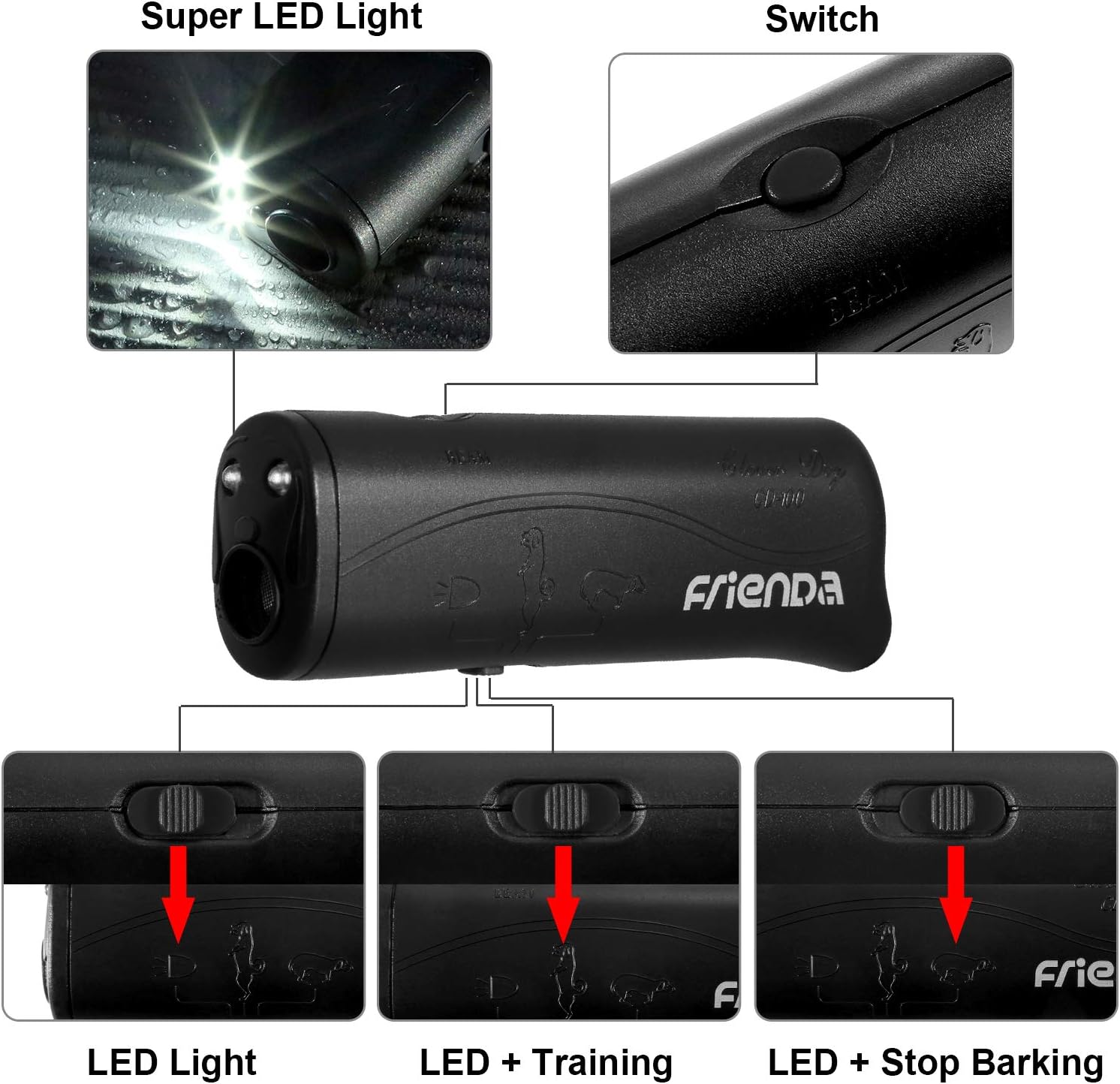 Produktinformationen "LED Ultraschall Hunde Repeller und Trainer Gerät 3 in 1 Anti Bellen Stop Rinde Handheld Hunde Trainingsgerät (Schwarz)"