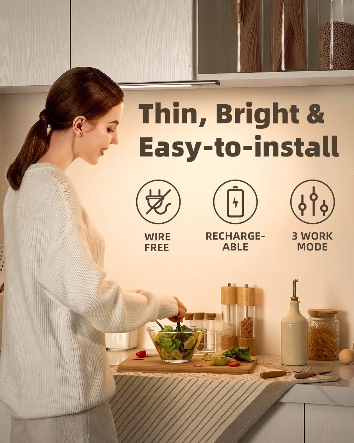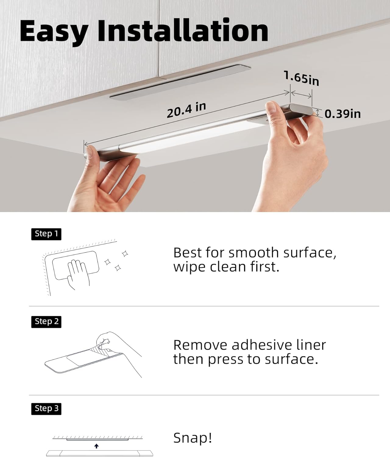 - 【Ultradünn & einfache Installation】 Das aus eloxiertem Aluminium gefertigte Gehäuse der Leuchte ist nur 10 mm dick und verfügt über integrierte Magnete an der Rückseite. Dadurch kann es sicher an der Befestigungsleiste und an jeder magnetischen Metalloberfläche befestigt werden.