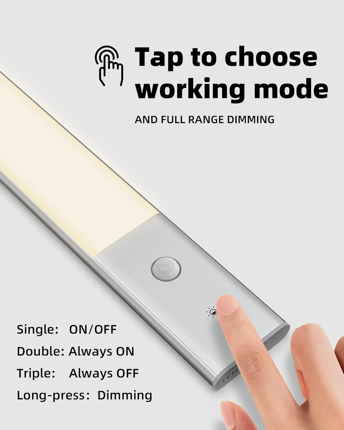 - 【Auto und Immer-Ein/Aus-Modus】 Verwenden Sie den Auto-Modus für allgemeine Zwecke, den Immer eingeschaltet (doppeltes Antippen) für Notsituationen und den Immer-Aus-Modus (dreifaches Antippen), um das Licht geschlossen zu halten. Hinweis: Der Immer-Ein Modus schaltet das Licht alle 30 Minuten aus, um ungewollten Stromverbrauch zu vermeiden.