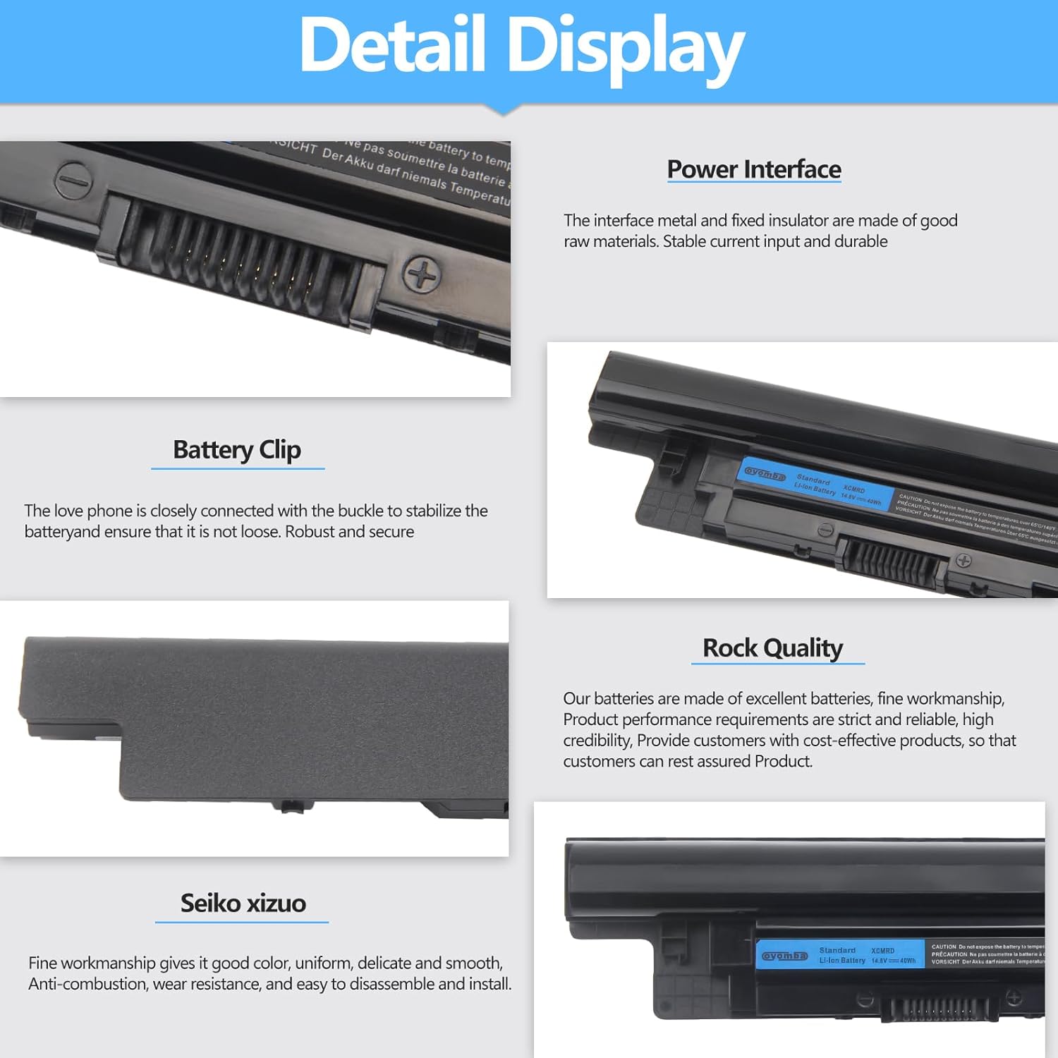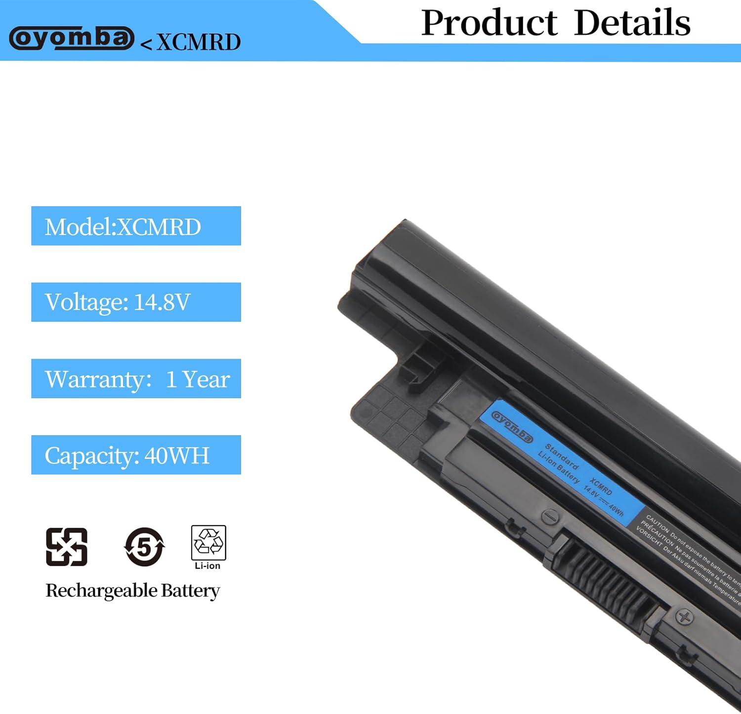 - 【Batterie Spezifikation 】 Modell: XCMRD; Typ: Wiederaufladbares Lithium-Polymer; Spannung: 14.8V; Kapazität: 40Wh/2700mAh; Anzahl der Zellen: 4 Zellen; Batterielebensdauer: Innerhalb der Batterielebensdauer, kann 1000 Ladezyklen erreichen.