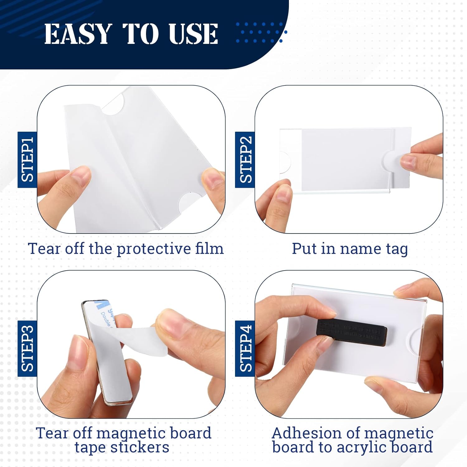 Zuverlässig und geeignet: Selbstklebende Namensschilder mit Magnet bestehen aus hochwertigen, transparenten Acrylmaterialien, bitte reißen Sie vor Gebrauch die Schutzfolie auf der Ausweishülle ab; Die Größe beträgt etwa 90 x 54 mm/ 3,54 x 2,13 Zoll und sie sind für die meisten Karten geeignet