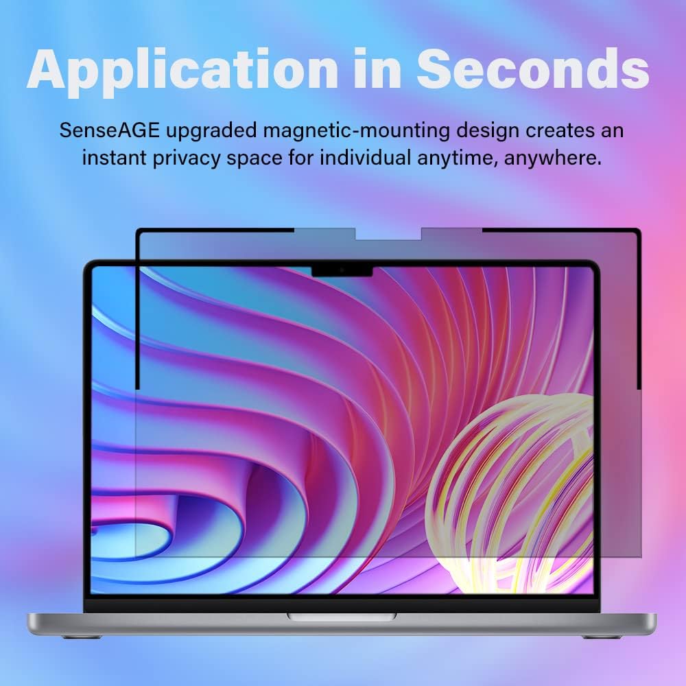 【Müheloser Datenschutz】SenseAGE Sichtschutzfolie lässt sich magnetisch befestigen und spielend leicht anbringen oder entfernen, ohne klebrige Rückstände oder Chaos zu hinterlassen.