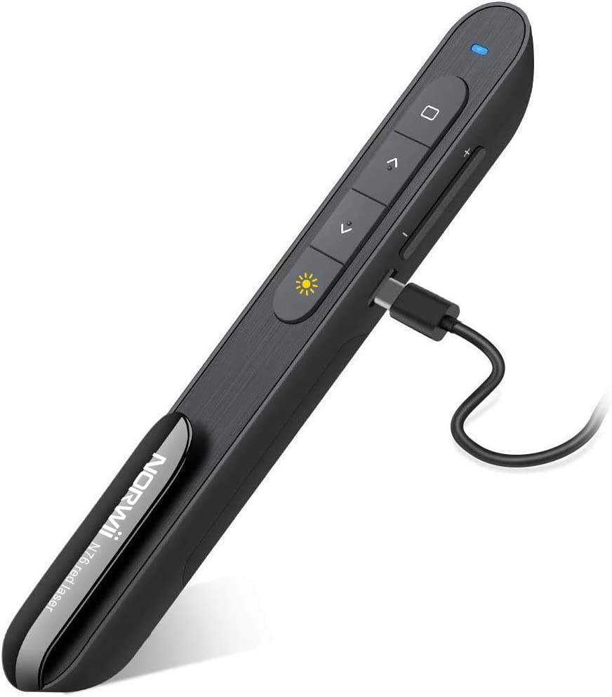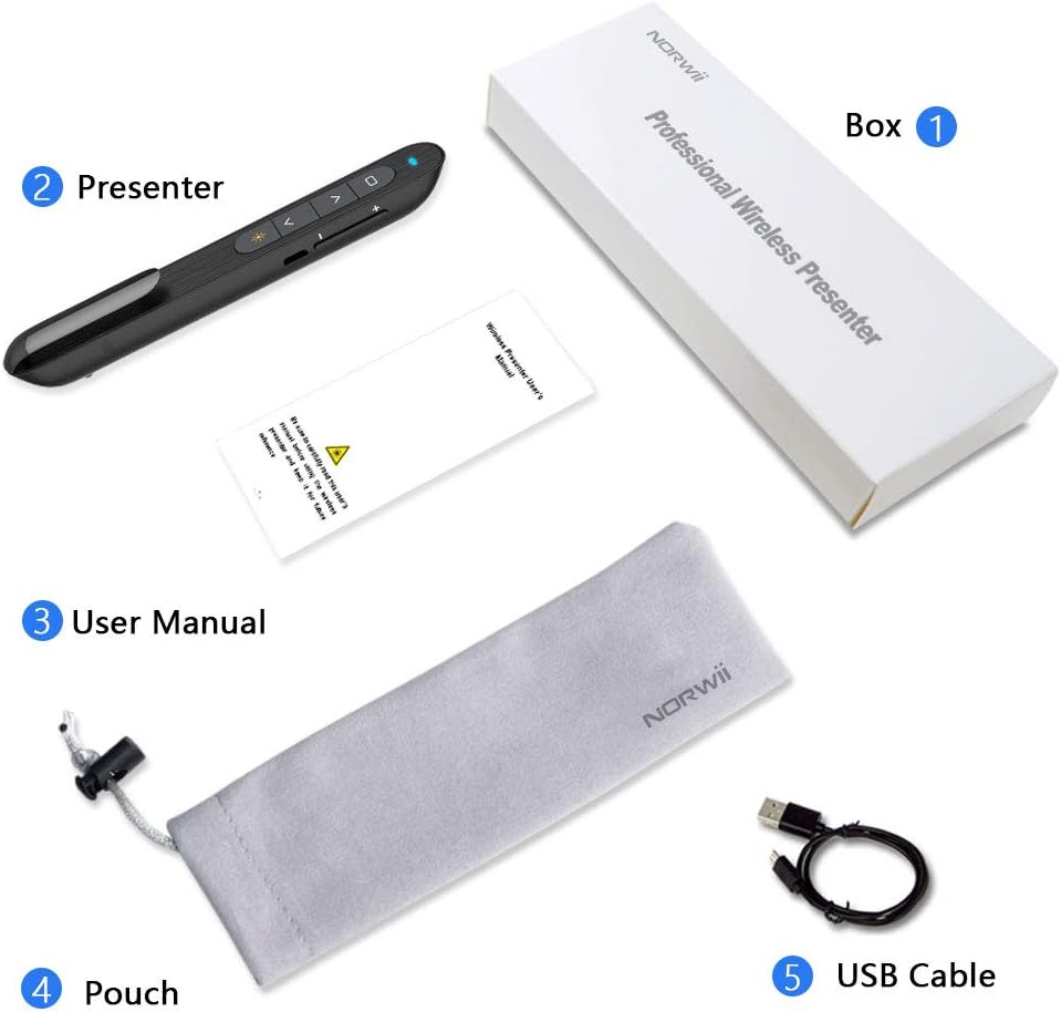 【Plug & Play-Präsentationsfernbedienung】①Originaldesign von NORWII, direkt ab Werk von KNORVAY erhältlich. ②Laserpointer wiederaufladbar Unterstützt Eingabetaste, Tab, Alt-Tab und Hyperlinks, Bild auf / ab, Schwarz / Vollbild, Fenster wechseln. ③Presenter Clicker ist einfach zu bedienen, nur Plug & Play.