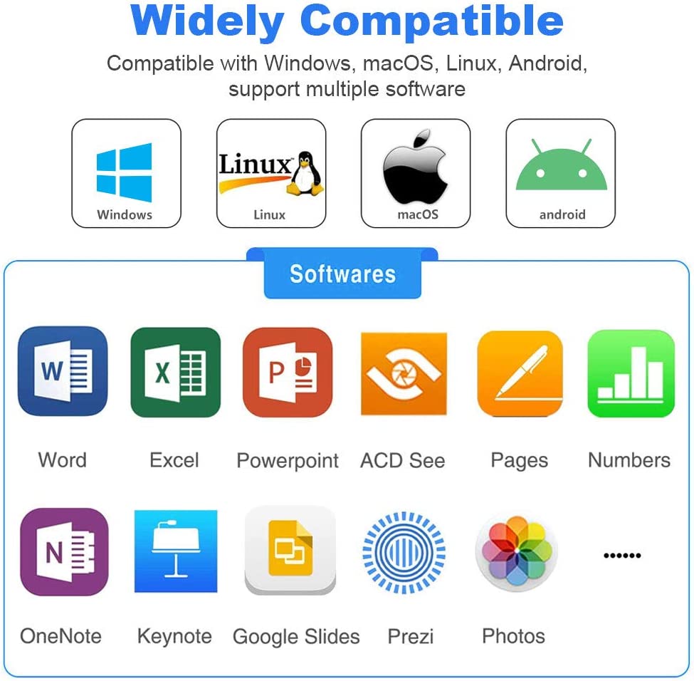 【Weitgehend kompatibel】 Presenter Remote unterstützt Betriebssysteme - Windows 2003 / XP / Vista / 7/8/10, Mac OS, Linux, Android; Powerpoint Remote unterstützt Software - PowerPoint, Google Folien, Keynote, PDF, MS Word, ACD See, Website, iWork (Keynote & Numbers & Pages), Prezi usw.