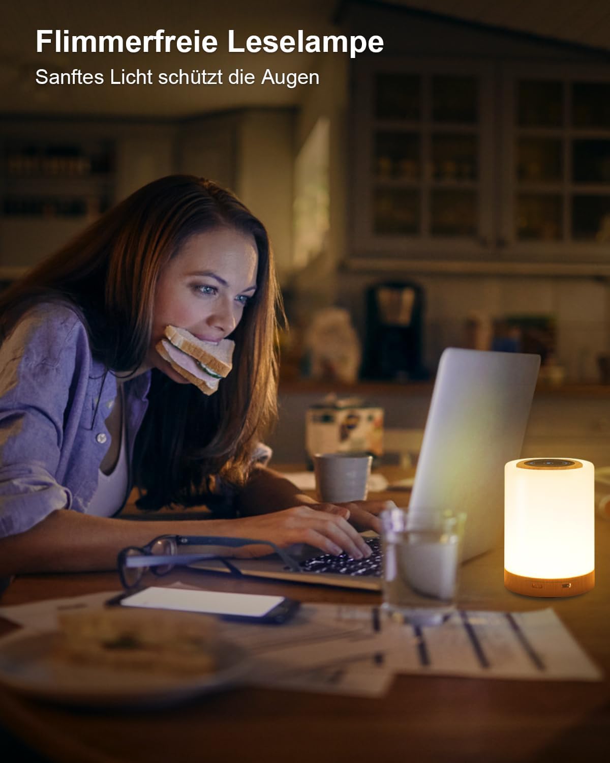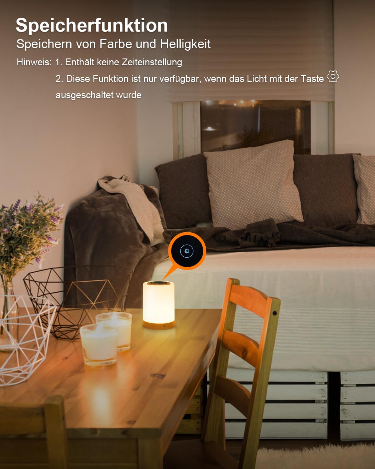 【Einfache Touch-Bedienung】Erleben Sie die Bequemlichkeit nachttischlampe touch dimmbar. Ein einfacher Kippschalter oder eine 3-Sekunden Berührung schalten das nachtlampe ein. Stellen Sie mühelos Ihren bevorzugten Lichtmodus, Timer und Ein-/Ausschalten über den intuitiven blauen Nachtsicht-Touchscreen ein. Und dank der Speicherfunktion erinnert es sich an Ihre letzten Einstellungen, um einen reibungslosen Betrieb jedes Mal sicherzustellen (nur bei ausgeschaltetem "Mode Key").