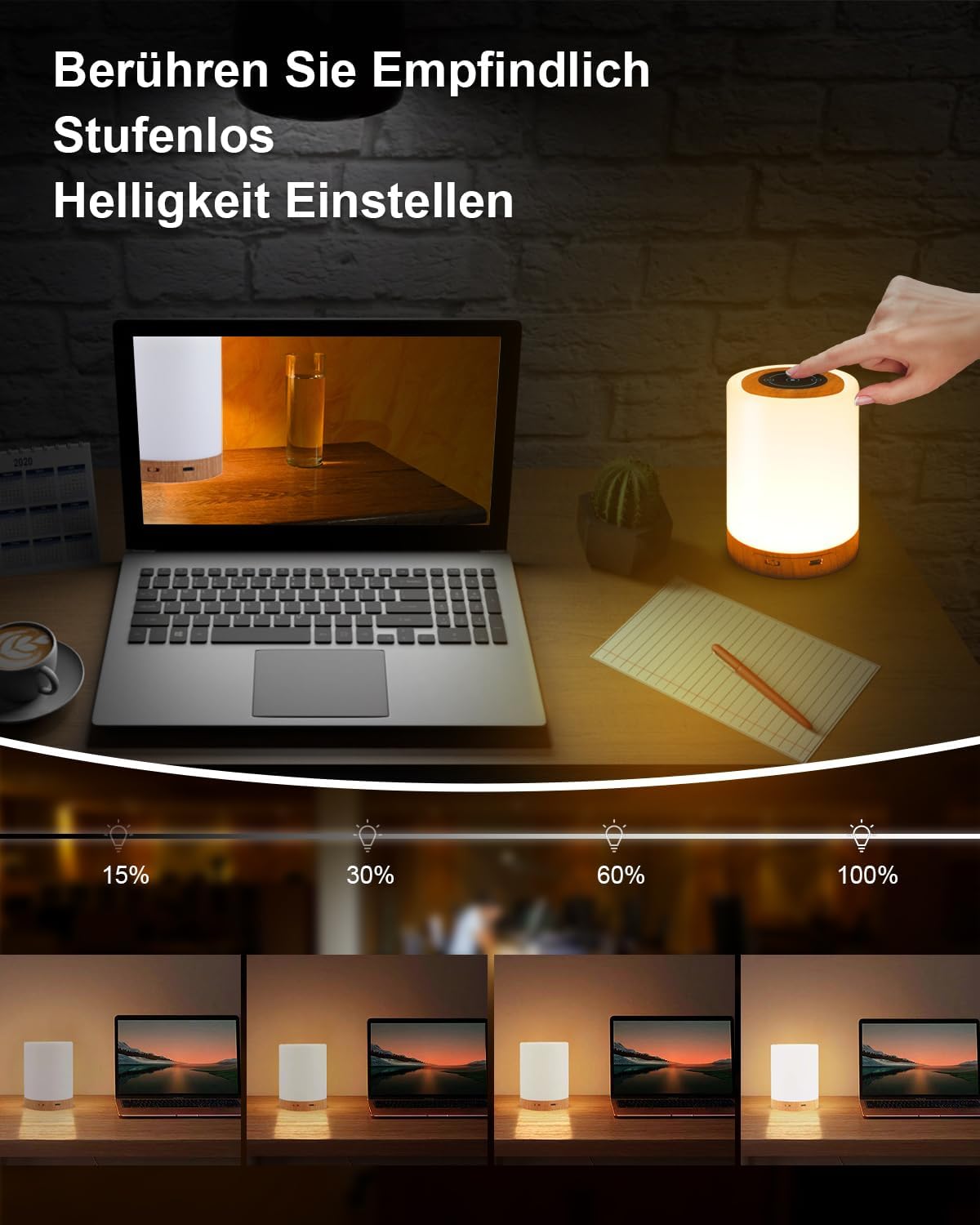 【Helligkeit Anpassen】Erleuchten Sie Ihren Raum perfekt! Die dimmbares nachtlicht bietet 4 Helligkeitsstufen durch kurzes Drücken (Dimmen, Niedrig, Mittel und Hoch) oder stufenloses Dimmen durch langes Drücken. Von leselampe über schlummerlicht bis hin zum tischlampe kabellos - erfüllen Sie all Ihre Beleuchtungsbedürfnisse. Und dank USB-C Ladefunktion genießen Sie eine verkürzte Ladezeit für ununterbrochene Brillanz.