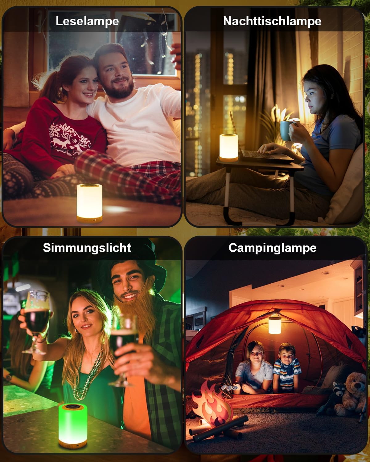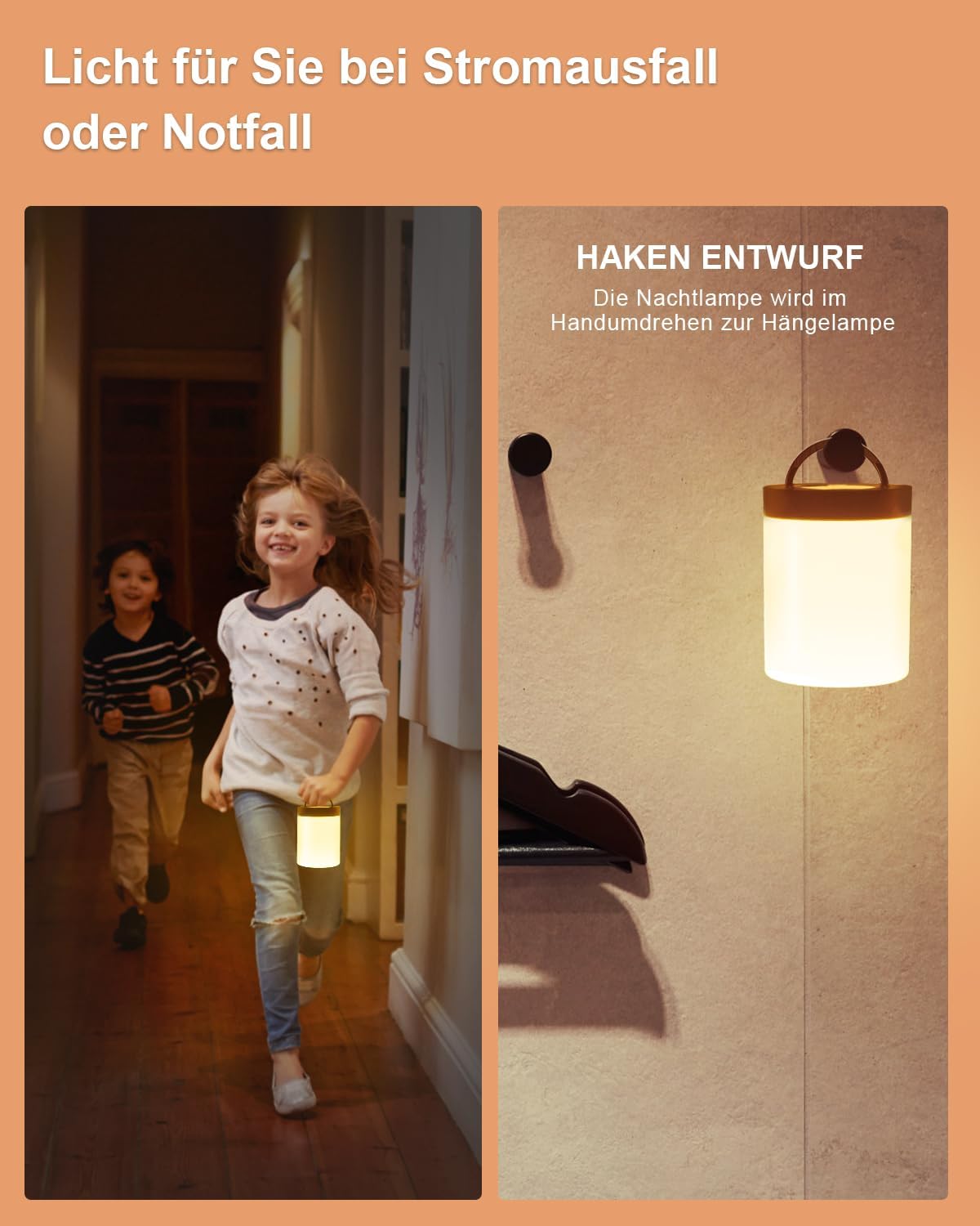 【Tragbare Aufladbare Lampe】Neben einem weichen, augenfreundlichen Licht ist die nachtlampe rgb hochgradig tragbar und einfach zu bedienen. Der Boden hat auch einen kleinen einklappbaren Griff der gut dazu geeignet ist sie aufzuhängen, ideal für Schlafzimmer Nachtbeleuchtung, Partydekorationen und Outdoor-Campingtrip.