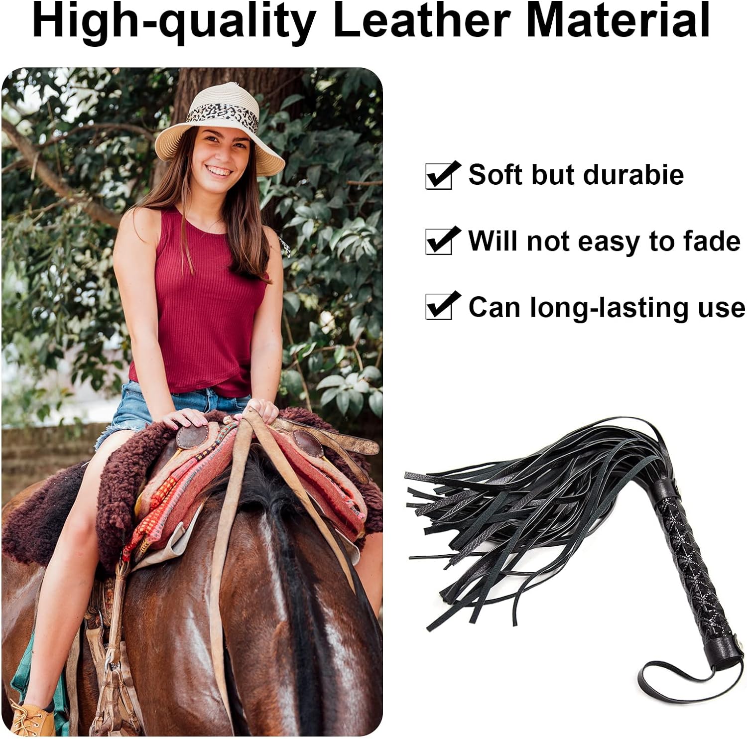 ✅【Top Material】 Unsere gerte für pferde ist aus PU Leder gefertigt, stark und langlebig. Weich und bequem, bricht oder reißt nicht leicht, bringt Ihnen ein gutes Fahrerlebnis.