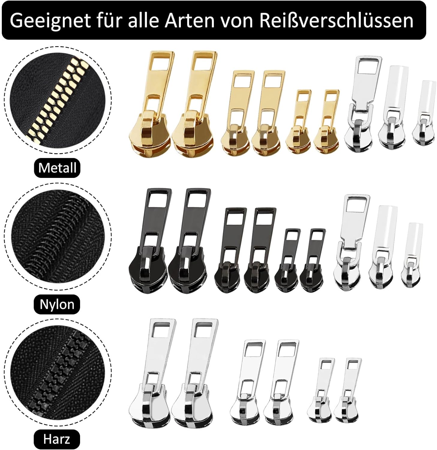 【Material】 Das Haraqi Reißverschluss Reparatur Set besteht aus hochwertigem Metall, das glatt, poliert, langlebig. Dank der hochwertigen Beschichtung verblassen die Reißverschlussköpfe nicht und sind äußerst langlebig. Sie sind wiederverwendbar und abnehmbar, was sie ideal als Ersatz für defekte Reißverschlüsse macht.