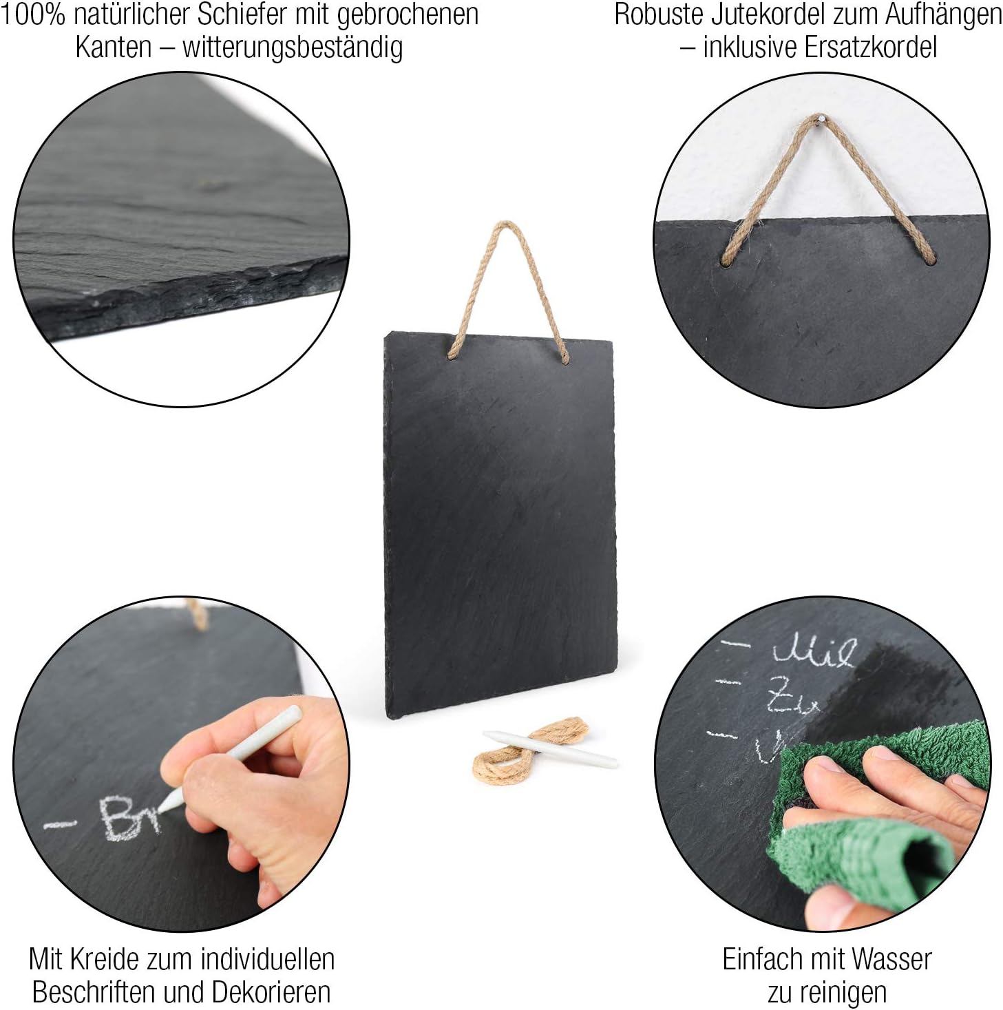Schiefertafel (30,5 cm x 20 cm) zum Aufhängen mit Juteband