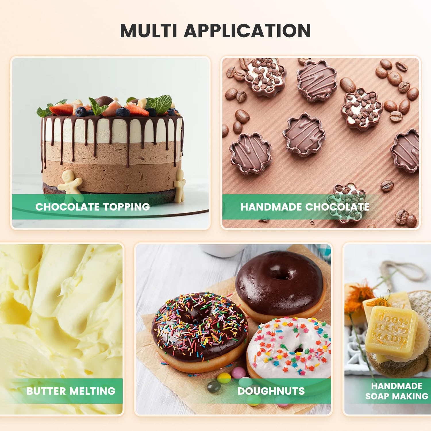 【Multi-Anwendung】Diese Temperiermaschine kann nicht nur für das Schmelzen von Schokolade verwendet werden, sondern auch für andere Zwecke wie Butter schmelzen, handgemachte Kerzen und handgemachte Seifen machen. Und es ist geeignet für den Einsatz in verschiedenen Orten wie Lebensmittel- und Getränkeläden, Konditoreien, Kantinen, Schokoladengeschäfte, Cafés und zu Hause.