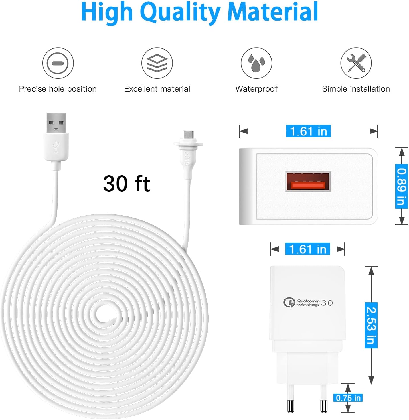 Produktinformationen "Stromadapter mit 30ft/9m Ladekabel für eufycam S330 eufy 3C Sicherheitskamera (30ft/9m Stromkabel*1+ QC3.0 Stromadapter*1)"