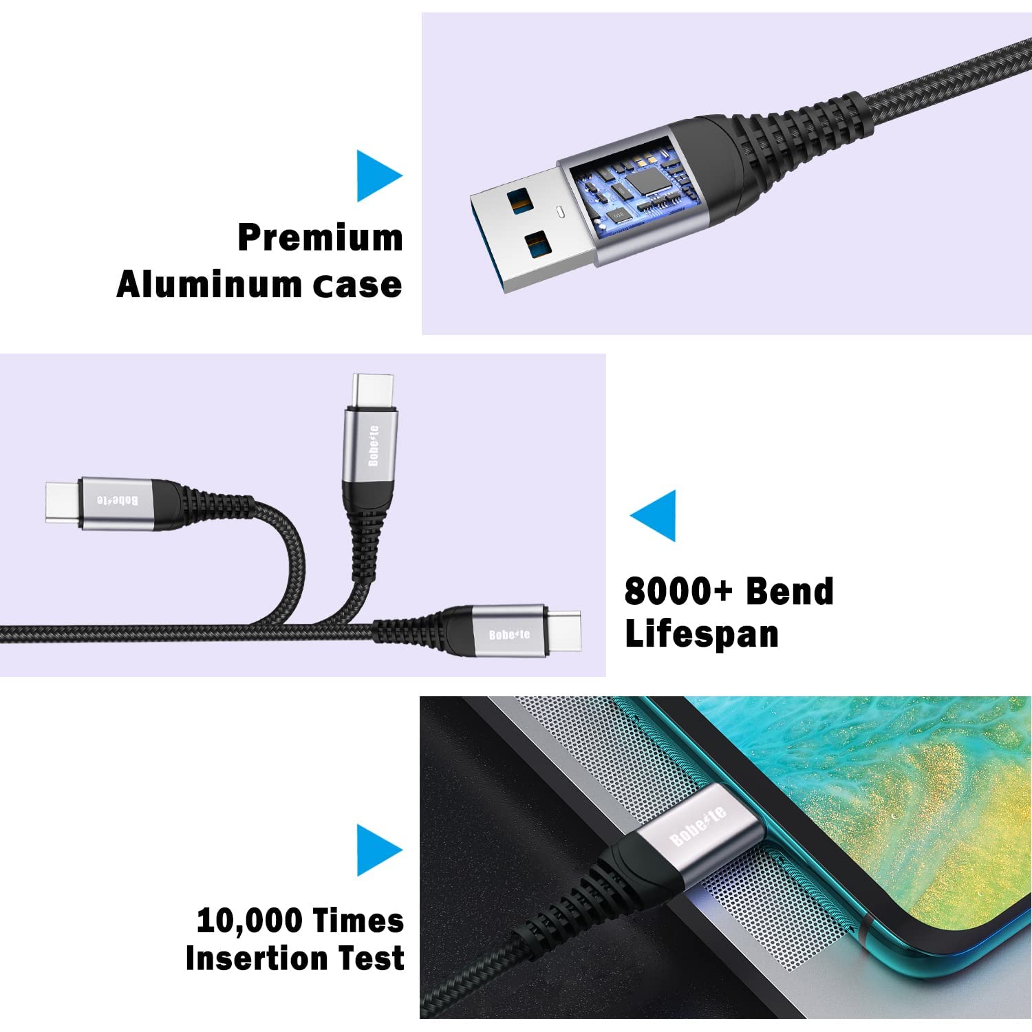 Qualitätsprüfung: Jedes unserer Kabel wird auf 3 verschiedenen USB-C-Geräten getestet, um eine optimale und flüssige Ladequalität zu gewährleisten. Unsere Tests werden in realistischen Umgebungen durchgeführt, um maximale Haltbarkeit des Produkts zu gewährleisten und Schäden durch Überladung zu verhindern.