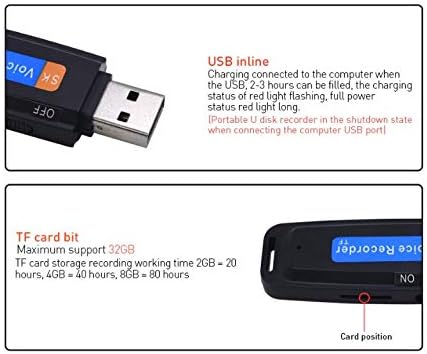 Hochwertige Audioaufnahme nimmt bis zu 10 Stunden pro GB der eingelegten TF-Karte auf (unterstützt bis zu 32 GB also 320 Stunden!)