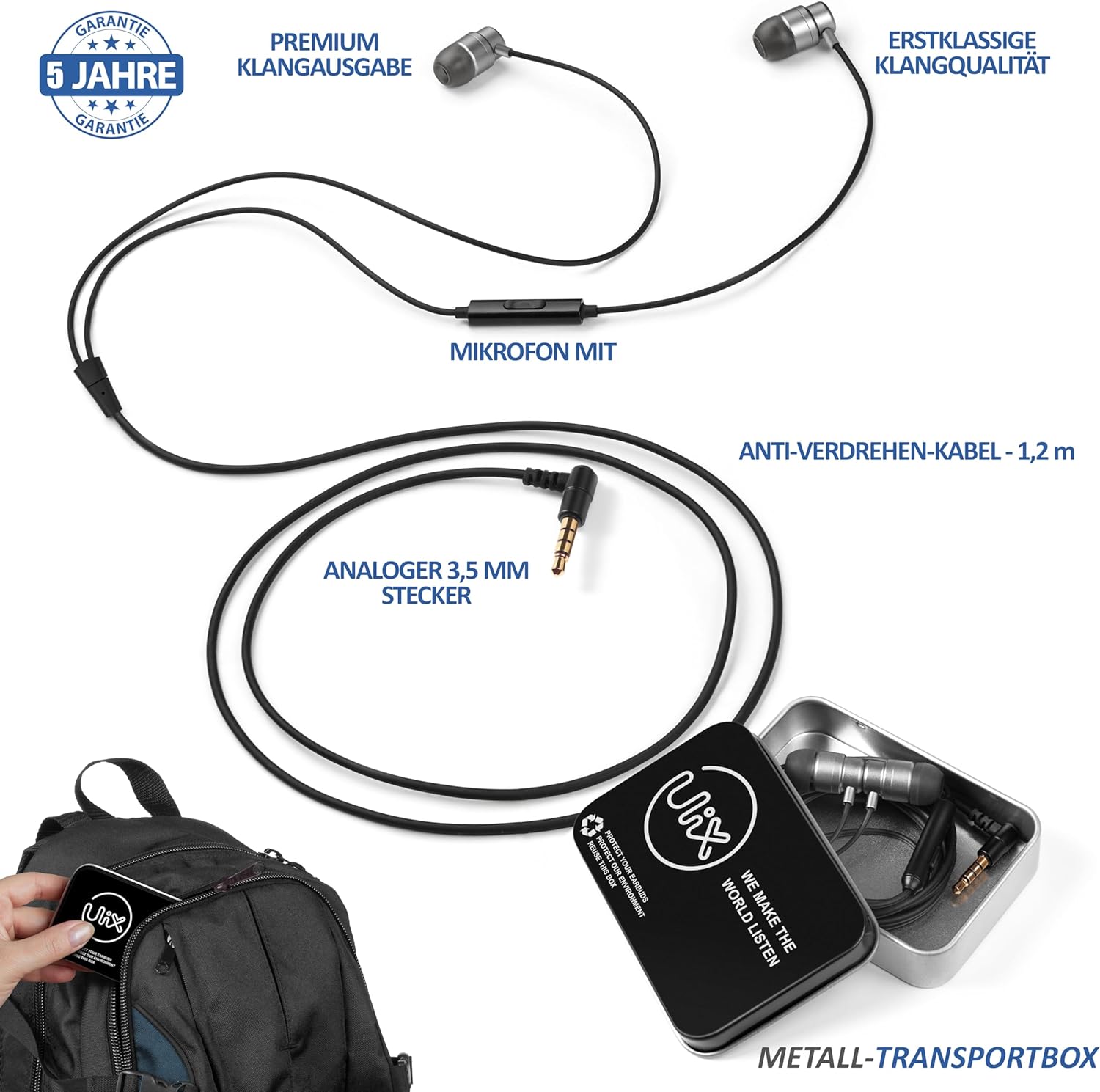 🎵【ANGENEHM, WIDERSTANDSFÄHIG UND KOMPATIBEL】Auf Basis von Ohrkanalstudien mit Tausenden von Menschen hat ULIX Ohrhörer mit maximalem Komfort, Stabilität und passiver Geräuschisolierung entwickelt. Das Kabel ist weich und langlebig sowie mit thermoplastischem TPE-Gummi verstärkt. Das Produkt ist langlebig und mit Android, Apple sowie Laptops und Computern kompatibel.