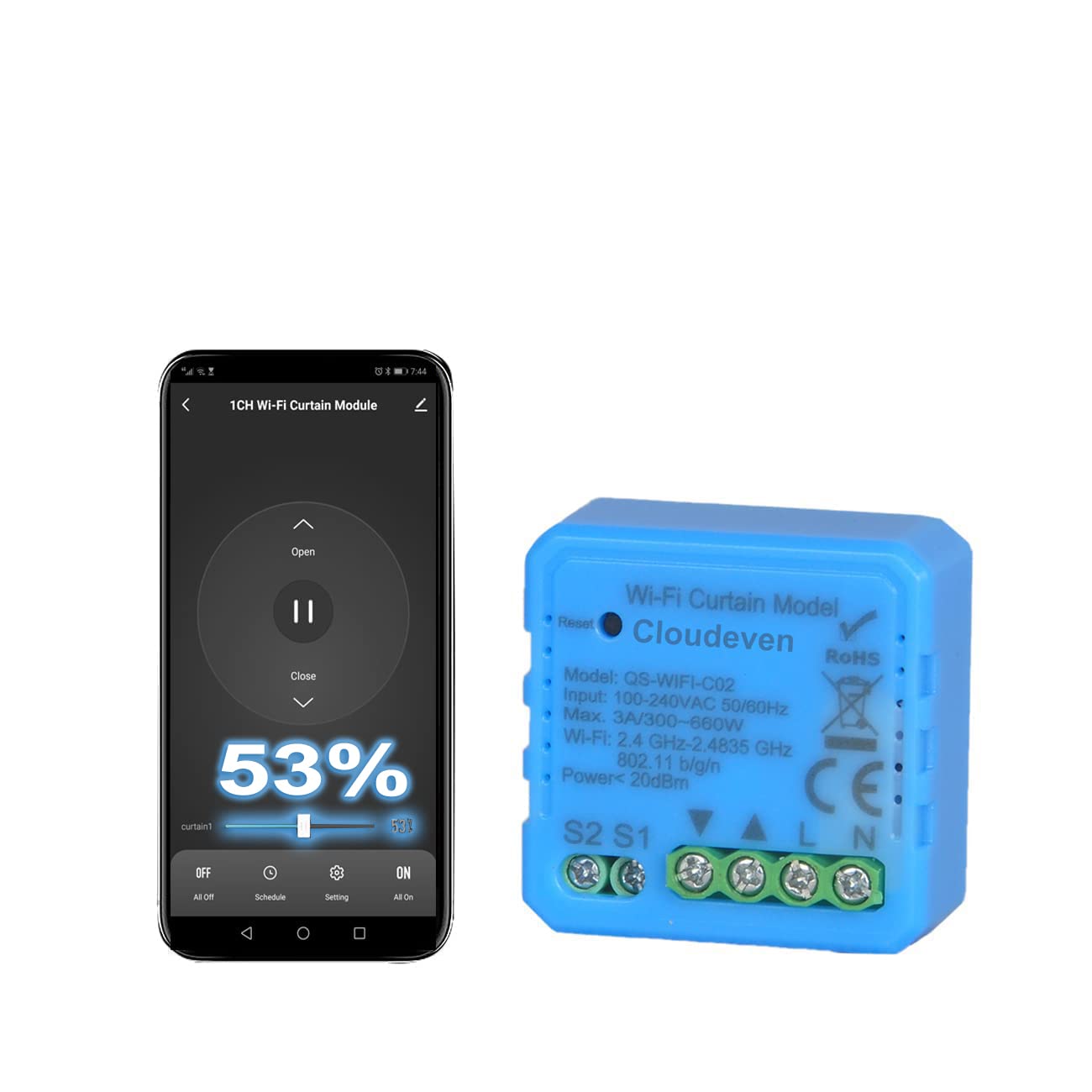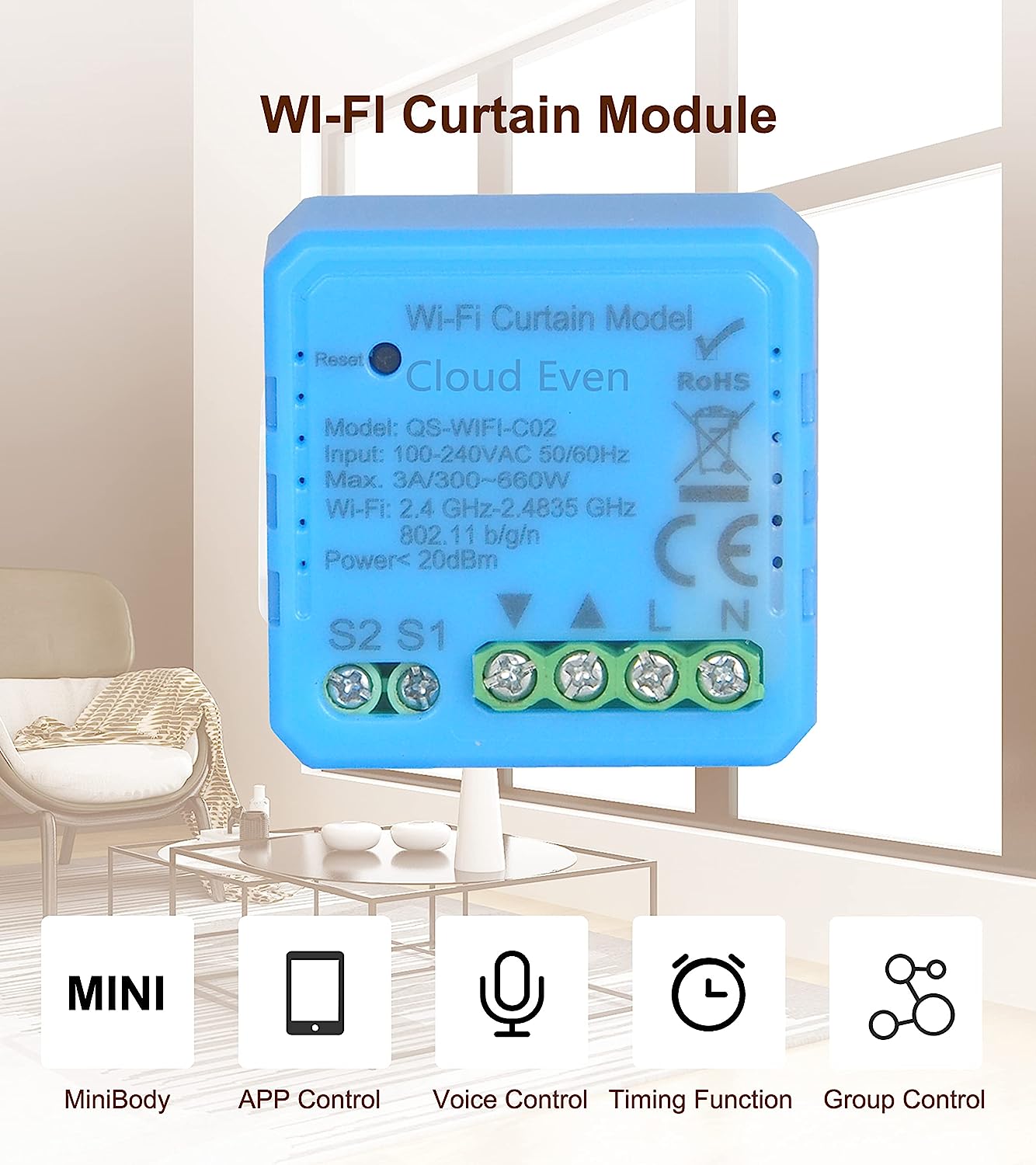 Kompatibel mit dem Originalschalter für Rollläden: Cloud Even WLAN-Rollladenrelais ist klein genug, um in der 503-Box, in der Anschlussdose und in der Wandsteckdose installiert zu werden. Verbinden Sie es mit jedem 4-adrigem Rolladenmotor und Sie können den traditionellen elektrischen Rollladen intelligent machen (max. 3A 300-660W) und steuern Sie es von jedem Teil des Telefons, was Ihnen ermöglicht, die ursprüngliche Funktion des Wandschalters beizubehalten