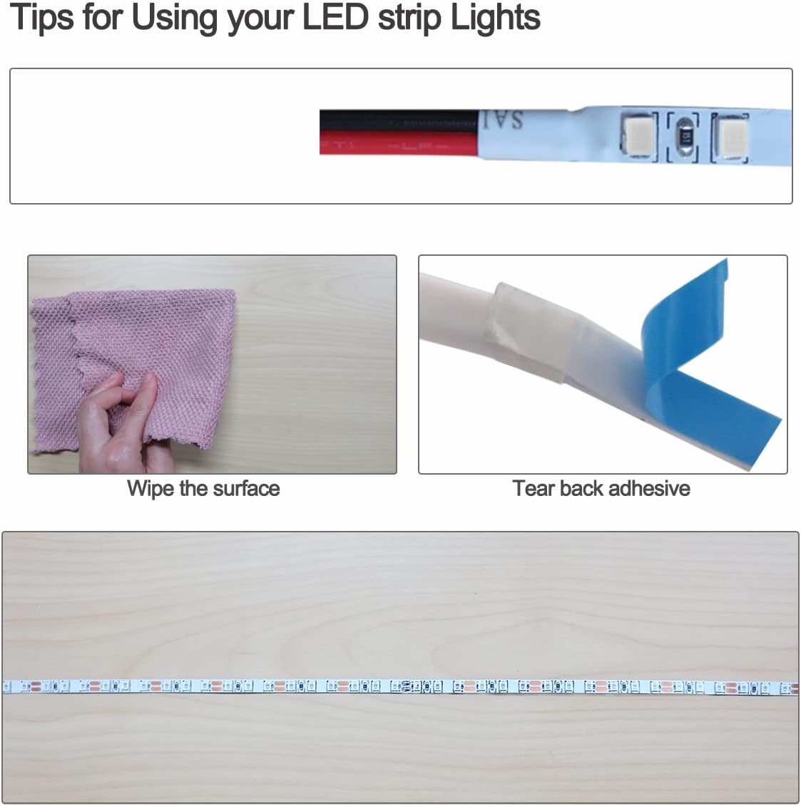 - Einfach zu installieren: Led lichtleiste kann zwischen jeweils 3 leds geschnitten werden, Es kommt mit doppelseitigem Klebeband, einfache Anwendung, Reinigen Sie zuerst die Oberfläche und passen Sie sie dann auf jede trockene und ebene Oberfläche.