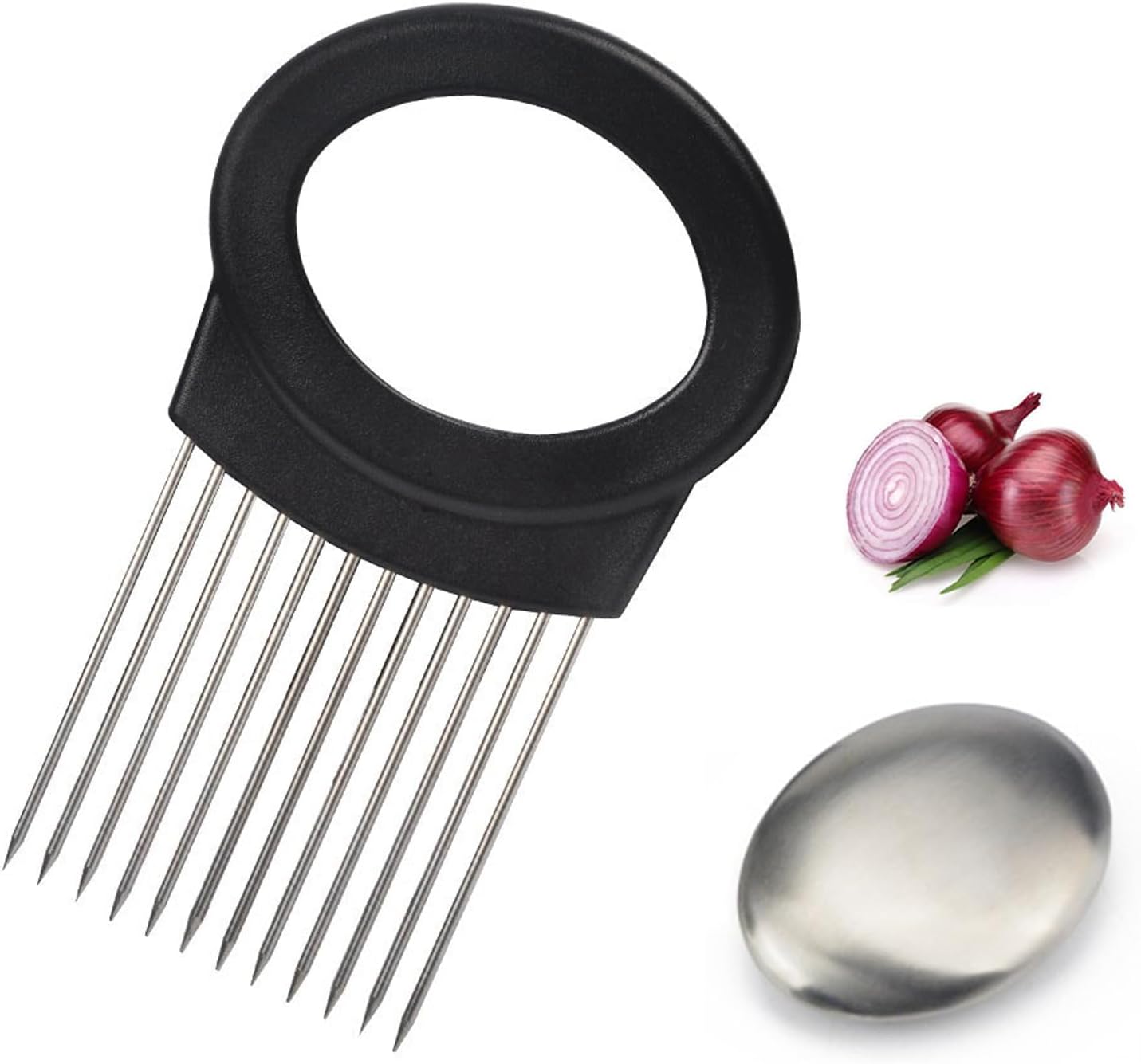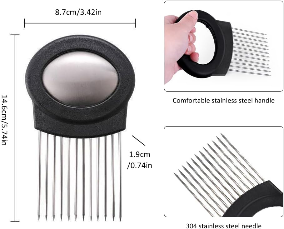 ăEinzigartiges Designă: Die Zwiebelnadel aus Edelstahl hat 12 Edelstahlgabeln unter dem Griff. Die Lebensmittel werden schnell und prĂ€zise geschnitten. Nadelreihen sind gesichert und gleichmĂ€Ăig verteilte Stiche verhindern ein Verrutschen und schneiden gleichmĂ€Ăig fĂŒr zusĂ€tzliche Sicherheit.