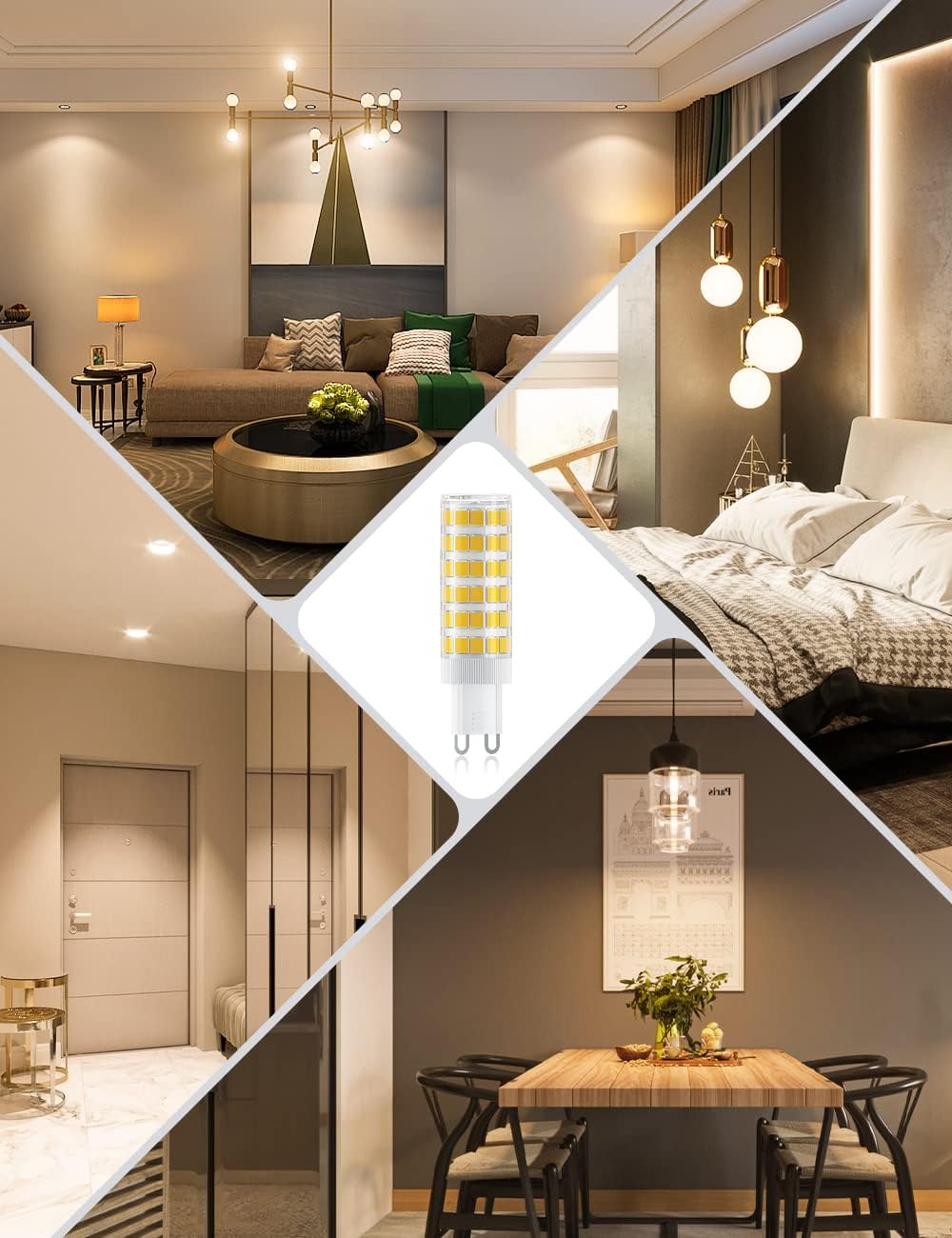 💡【Breite Anwendung & Einfache Installation】Die Größe: 15 * 60 MM. LED G9 Leuchtmittel 7W sind einfach zu montieren für verschiedene Atrten von G9 Lampenfassungen. Geeignet für Wohnzimmer, schlafzimmmer, Essszimmer, usw.