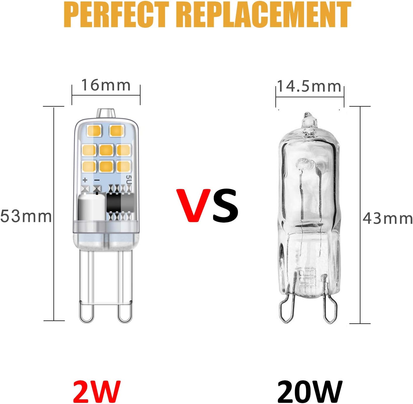⭐ 【<b> WICHTIGE WARNUNG </b>】 - Bitte überprüfen Sie die Abmessungen vor dem Kauf sorgfältig, ob sie zu Ihrer Leuchte passen. (Abmessungen: 53 mm x 16 mm); Sie sind nicht dimmbar, bitte verwenden Sie sie nicht mit einem Dimmer, da sonst die Lampen flackern oder Geräusche verursachen.