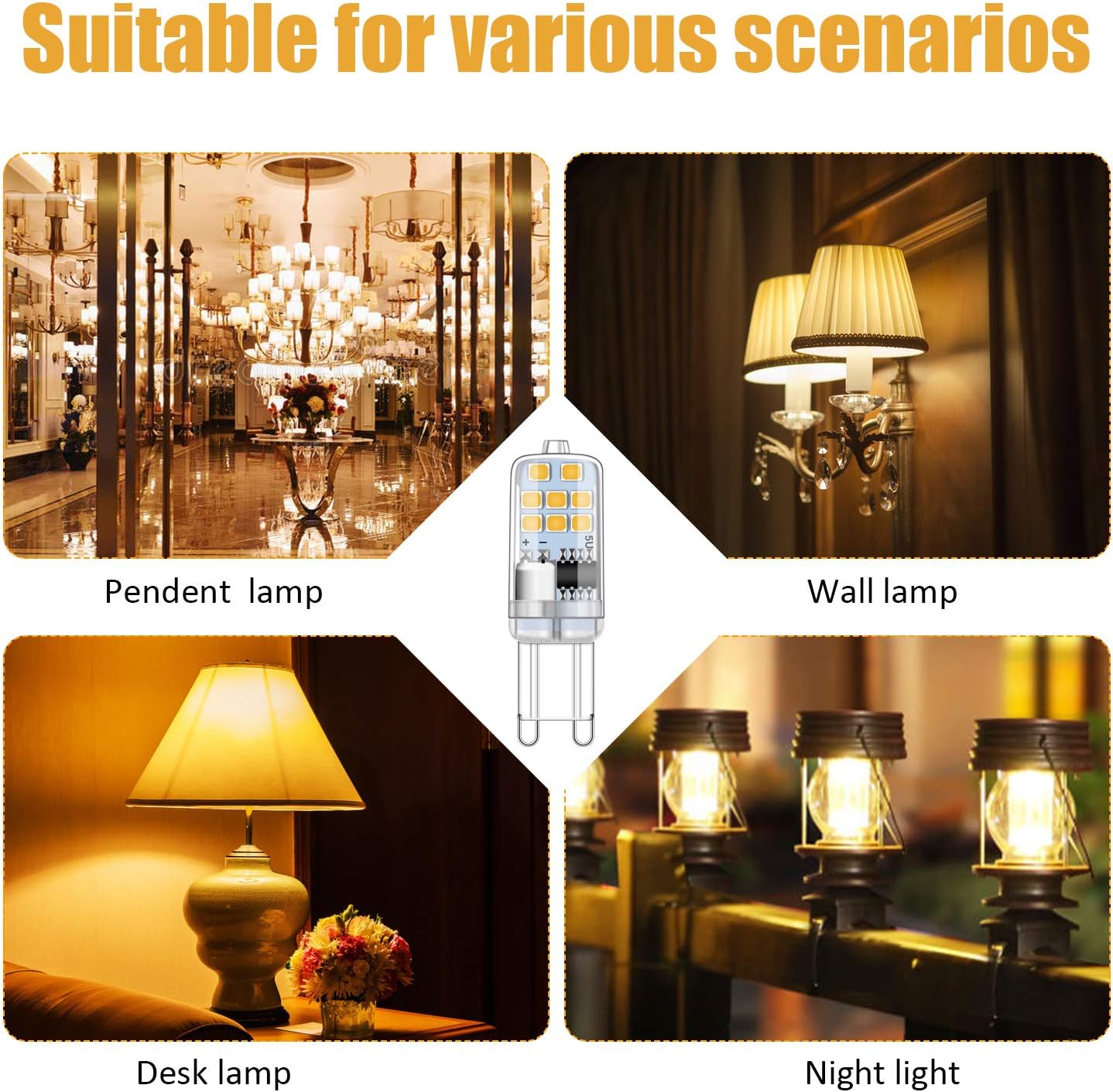 ⭐ 【<b> GESUNDE UND ROMANTISCHE UMGEBUNG </b>】 - Die g9 Energiespar lampe ohne Blei oder schädliches Quecksilber, ohne schädliche Strahlung, ohne UV oder IR Strahlung. Sorgen Sie für ein weiches und warmes Licht ohne Blendung und scharfe Schatten und schaffen Sie eine romantische Atmosphäre. Beleuchten Sie Ihr Zuhause mit außergewöhnlicher Farbkonsistenz.